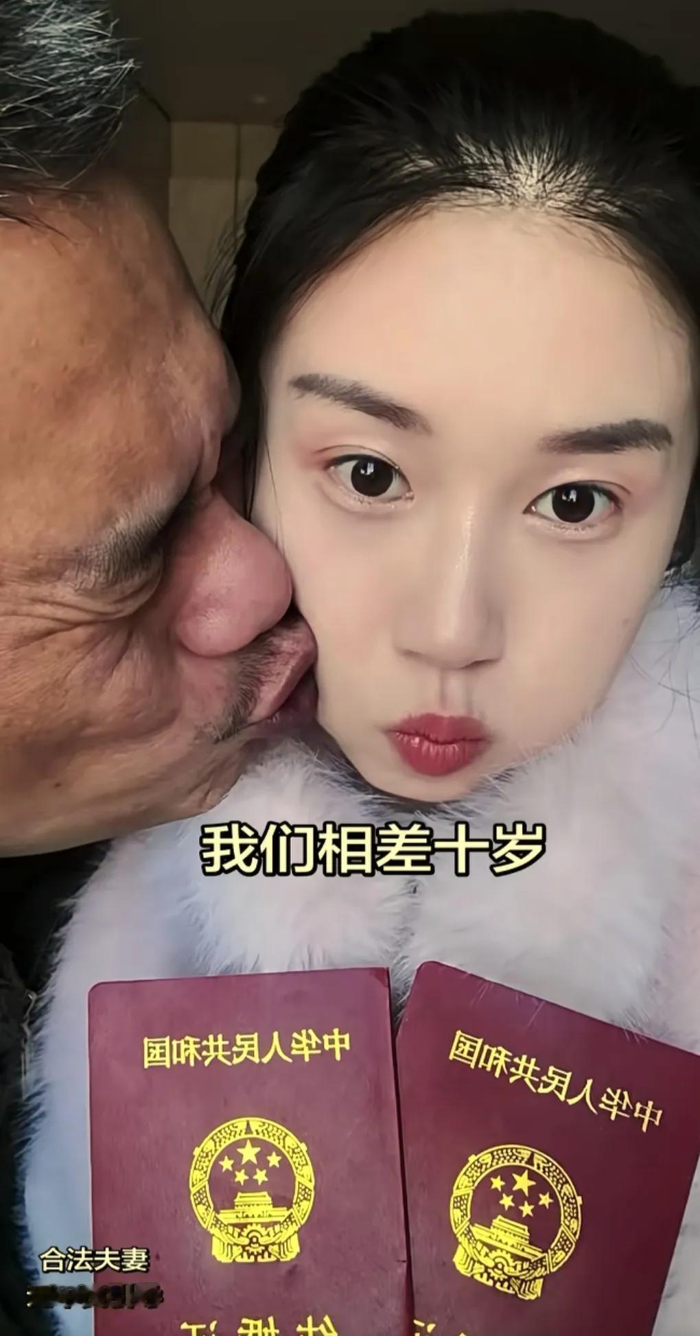 才相差十岁的夫妻,男人看着像大了一个辈分。 女人长得这么美,男人有那么几分丑。