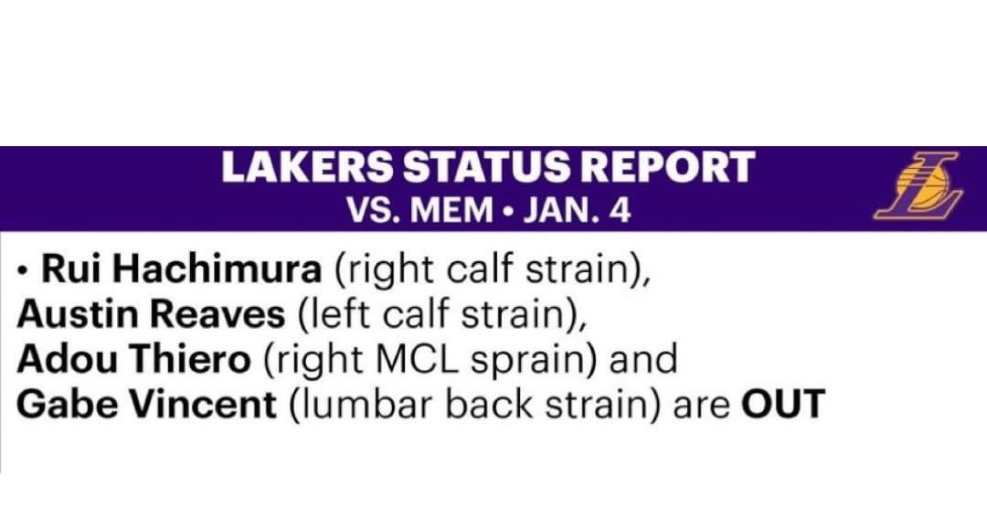 明天湖人主场再战灰熊,八村、里夫斯、阿杜、文森特四人确定缺席!而卢卡被报导目前正