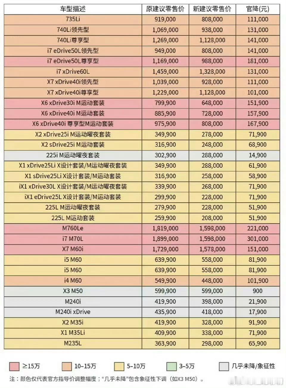 走量的车型基本都不在表里,又想忽悠我进店。 之前家里人纠结过430,前后排都顶头,车机夏天暴晒下都卡顿了,还好当时价格很劝退宝马中国回应最高降价30万