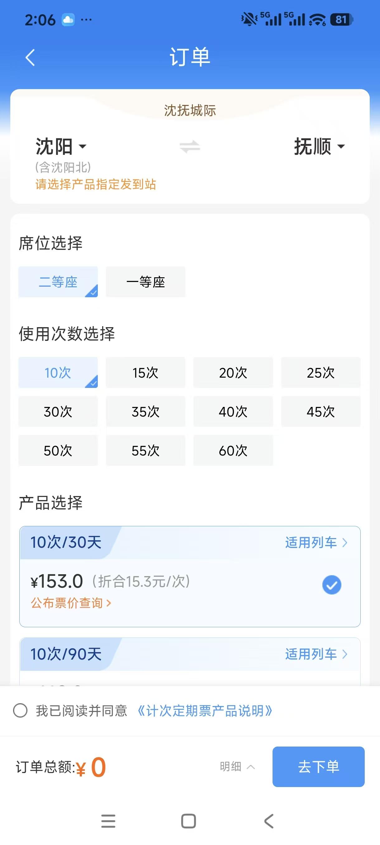 高铁月票开通助力沈阳、抚顺大发展!沈阳到抚顺经常通勤的小伙伴可以办理高铁月票了!从App铁路12306了解目前全国积极开展高铁月票次卡,有北京南到上海虹桥,沈阳到抚顺,济南到青岛,重庆北到巫山,其中沈阳到抚顺的 城际高铁票最便宜,单次折合15.3元/次,这极大的方便了市民乘车,方便了2地的交流,要知道原价21元-29元,大大降低了市民从出行成本! 沈阳市民建议,应该多设置这样的便捷方式,例如沈阳到大连,到营口,到葫芦岛,到丹东等都可以设置这样的月票卡,方便市民乘坐高铁的需要;当然也有沈阳市民建议,沈阳北-沈阳-沈阳南的高铁月票卡也行设置,一次原本6元现在4元就可以,或者更便宜点单次3元,估计客流量就爆满了,有效分解沿线客流量的压力,可以进行大力设置! 目前国铁承载量大,但是因为客流量不充足,备受争议,如果客流量上来了,自然就可以提升沿路的经济发展,提升城市经济,助力城市发展!