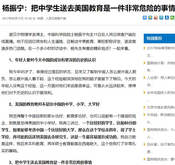 谈及中美教育差距时,杨振宁教授一语道出惊人言论!他说:“把孩子送到美国去接受教育