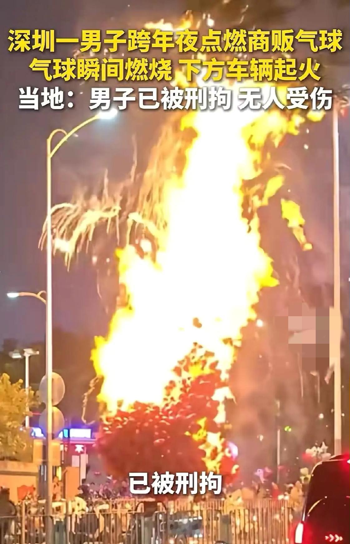 跨年夜“恶火”:无知恶行,必受严惩! 跨年夜,深圳街头热闹得像开了锅,处处洋溢着新年的喜庆。商贩们支起摊子卖气球,那一串串红彤彤的气球,在微风里晃悠,就像跳动的火焰,把节日氛围烘托得那叫一个足。大家排着队,满心期待着倒计时后放飞气球,让心愿随着气球飘向远方。 可谁能想到,这美好的场景,竟被一个男子的恶行瞬间打破。他瞅着小贩没注意,偷偷绕到背后,掏出打火机,“咔哒”一声,就把气球给点着了。刹那间,火光“轰”地一下冲天而起,气球像被点燃的炸弹,剧烈燃烧起来。 这还不算完,燃烧的气球掉下来,引燃了下方的车辆。火势“呼呼”地蔓延,现场一下子乱成了一锅粥,尖叫声、呼喊声此起彼伏。这男子呢,估计还以为自己搞了个“恶作剧”,能博大家一笑,可他哪知道,自己这一把火,烧的可不是简单的气球,而是他人的财产安全,甚至是生命安全! 网友们气炸了,纷纷指责:“这不是玩笑,这是从骨子里透出来的坏!”没错,这哪是什么恶作剧,分明就是故意纵火!万一火势失控,引发更大的火灾,那后果简直不堪设想,他必须按纵火罪论处! 好在相关部门反应迅速,这男子已经被刑拘。这就对了,法律不会放过任何一个作恶的人。这也给那些心存侥幸、想搞恶作剧的人敲响了警钟:别以为小打小闹没事,一旦触犯法律,等待你的必将是严厉的惩罚!让我们为正义点赞,也希望大家都能遵守法律,共同守护这美好的生活! 深圳圣诞 深圳迷惑行为
