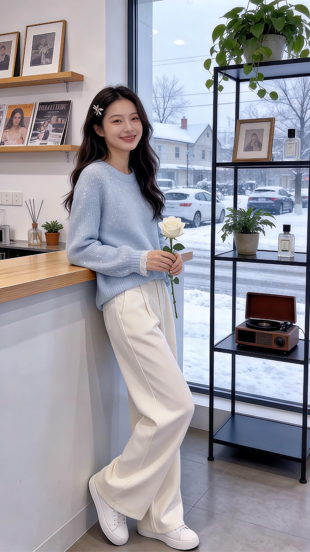 白衫是薄瓷的容器盛着心跳与呼吸绿裤是柔韧的藤缠裹着骨骼的倔强~柳丝拂