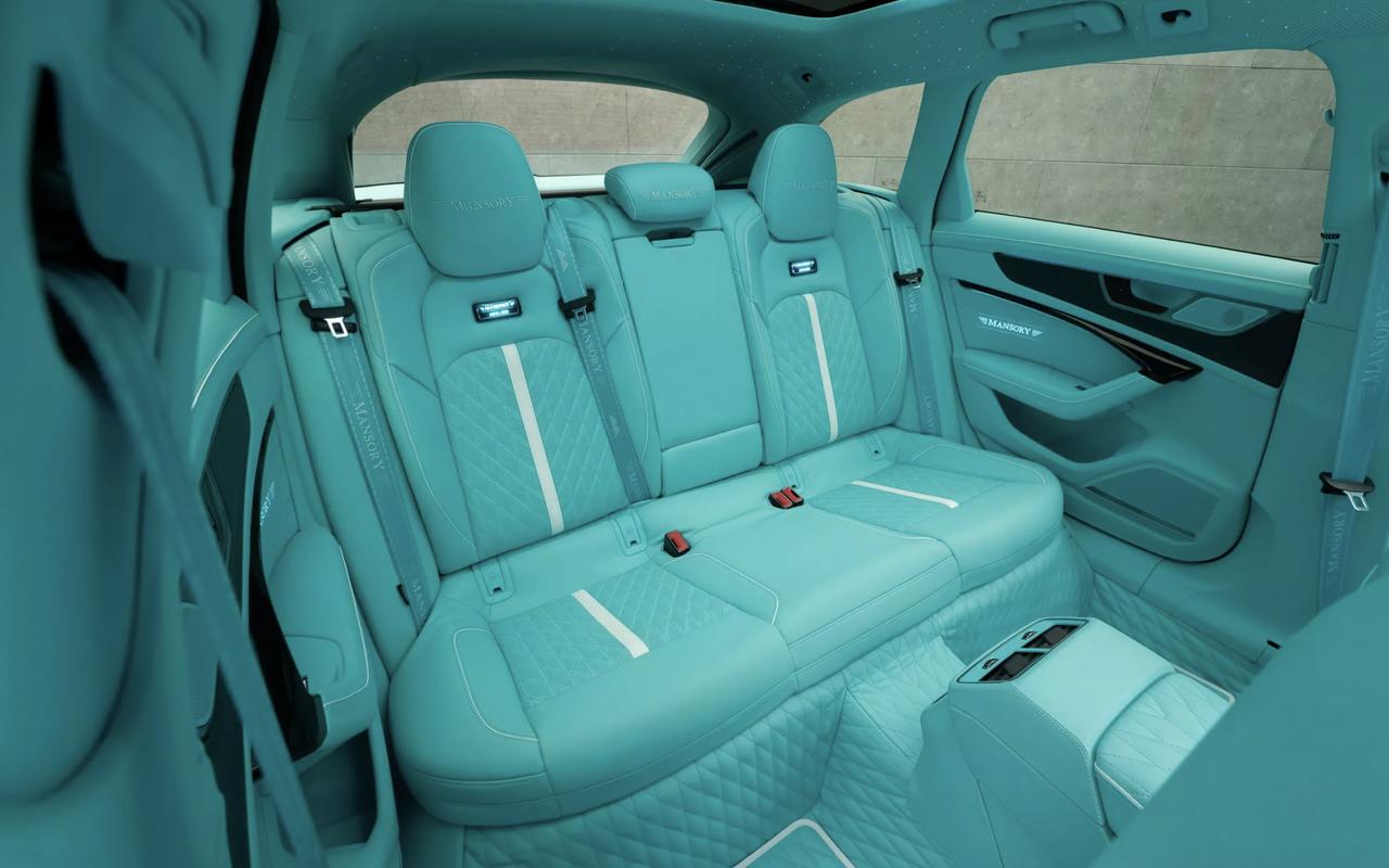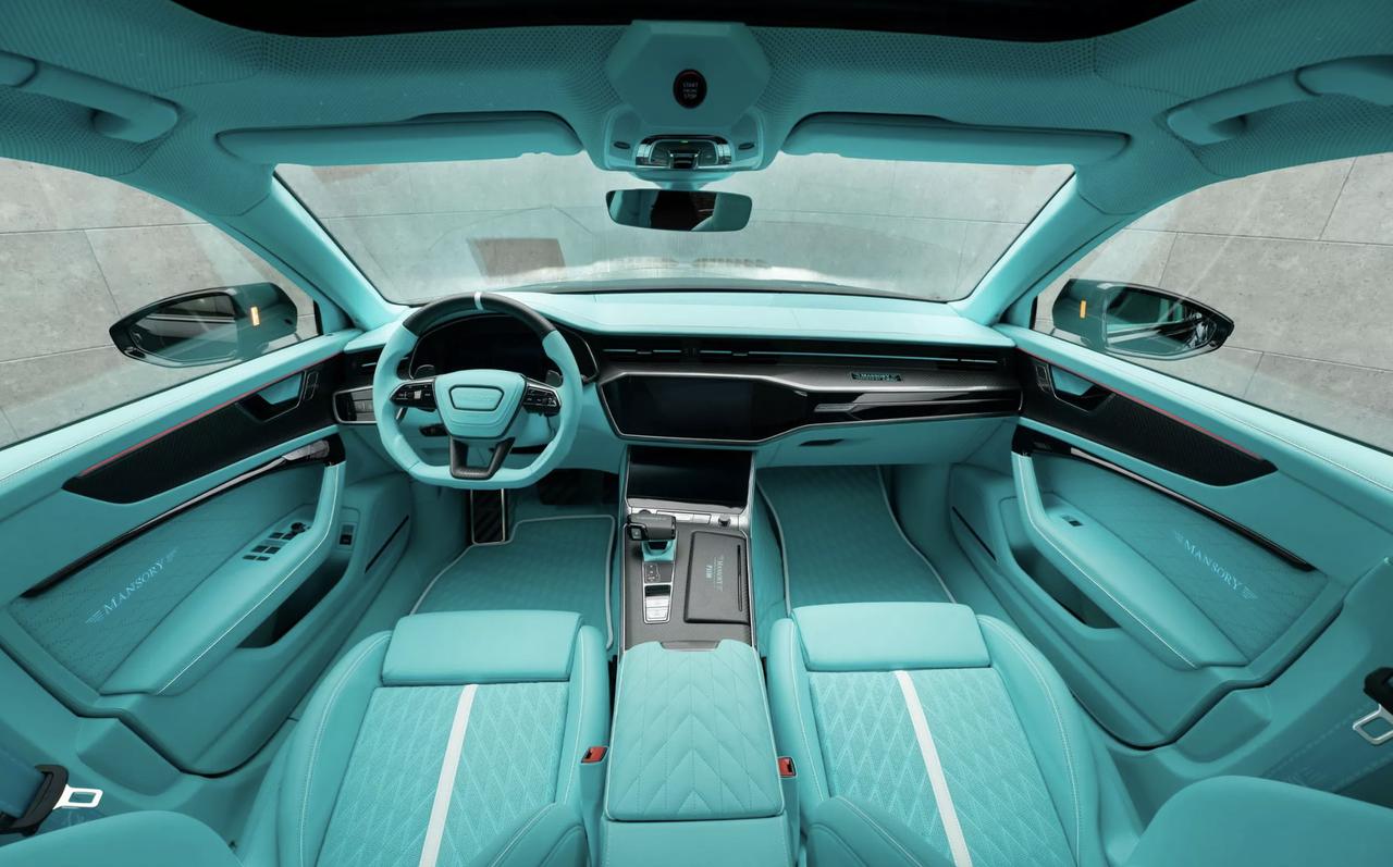 Mansory改造RS6——依然全碳! 这台经过改造的RS6采用黑色锻造碳纤空力套件+绿松石色点缀,配备22英寸YN.5轮毂,侧鳃、双层尾翼、F1刹车灯一并上身。动力方面,这台爆改RS6搭载4.0T V8发动机,但参数爆涨至1085马力/1250牛米,比原厂高出464马力。内饰部分,Mansory将其改造成由绿松石真皮、星空顶、发光徽标组合的豪华风格。【来自懂车帝车友圈】