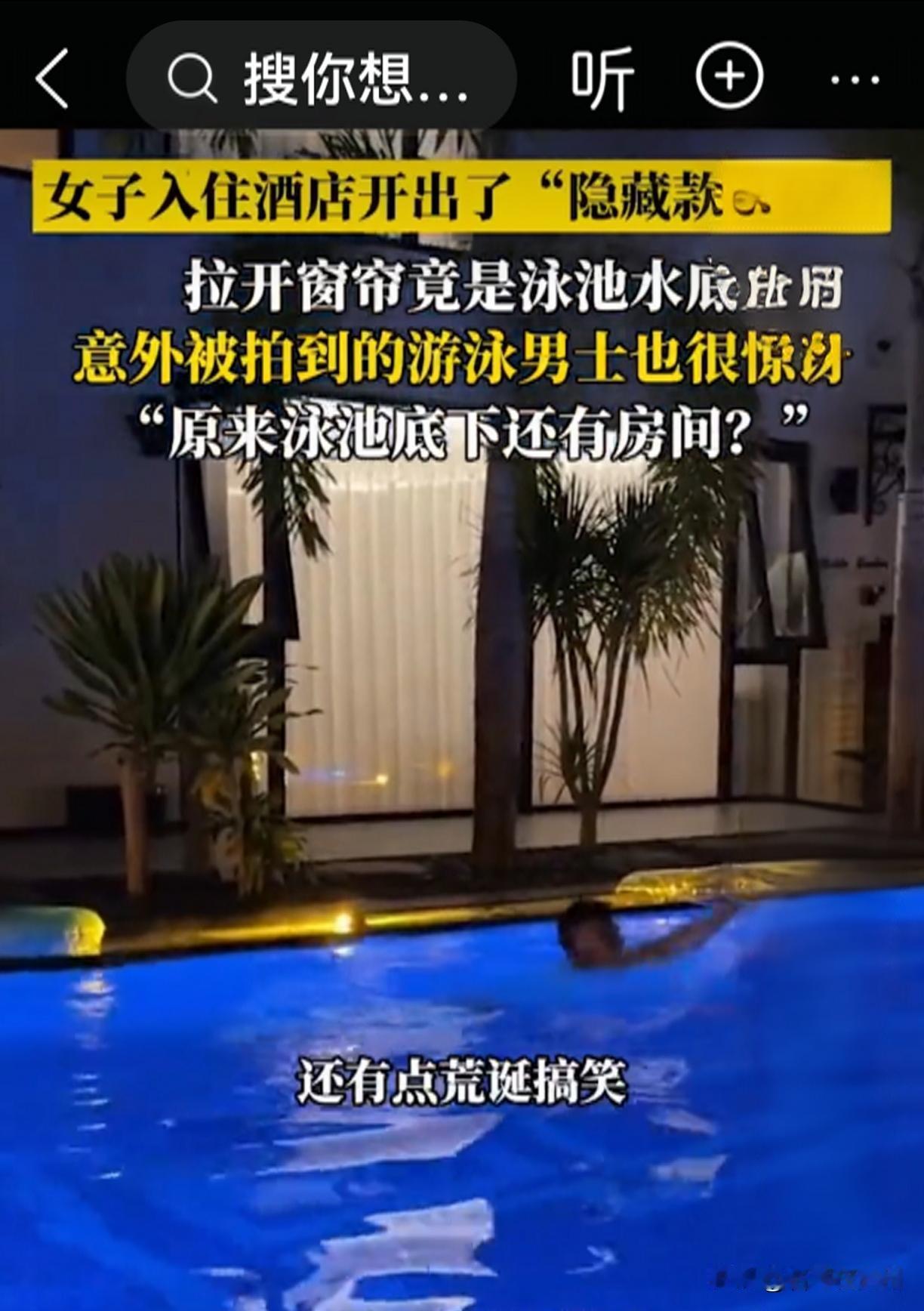西双版纳酒店“水族箱房”爆火!女子拉开窗帘竟与泳池大哥对视10秒,尴尬到窒息… 好家伙,现在住酒店都能开出“隐藏款”了?!就前两天,西双版纳一位谢女士元旦旅游想续住,前台神秘兮兮地说:“只剩一间特殊房了,您看行不?”谢女士没多想就答应了,结果一进房间,拉开窗帘——人直接傻了! 眼前根本没有风景,只有一整面玻璃外荡漾的泳池水!蓝汪汪的一片,连池底瓷砖缝儿都看得清清楚楚。 这哪是酒店啊,这简直是沉浸式水族馆体验!还没等她反应过来,一个游泳的大哥正好蹬腿划过来,一抬头,两人隔著玻璃四目相对,整整愣了十秒钟…空气都凝固了! 后来才知道,西双版纳元旦房太紧张,酒店把泳池边的设备间临时改造了。谢女士又好气又好笑:“拉开窗帘吧,怕被围观;不拉开吧,感觉自己住进了水箱…” 她偷偷拍了几张照,发朋友圈立马炸了——有人羡慕这是“海底世界平替”,有人却担心:这玻璃扛得住水压吗?晚上游泳的人影晃来晃去,睡得着吗? · “建议酒店推出套餐:住宿送泳镜,顺便能看清水里大哥的表情!” · “隐私呢?要是情侣住,是不是得全程拉窗帘?” · “求地址!我就爱这种奇葩房,旅行要的不就是这种意外故事吗?” 说实话,这种经历确实能聊一辈子——旅行中最难忘的,往往不是计划内的风景,而是这些猝不及防的“荒诞时刻”。它像一面镜子,照出我们骨子里既渴望安全,又偷偷期待打破常规的矛盾。住在规规矩矩的标间里,谁会记得呢?可这种游走在尴尬与新奇边缘的体验,反而成了我们平庸日常里的一抹奇趣。 但说到底,酒店不能光顾著搞噱头。安全感是冒险的底线,没有底线的惊喜,终会变成惊吓。毕竟,没有人真的想当“被观赏的鱼”。 你们旅游时遇过哪些离谱住宿?如果是你,会愿意为这种“水底房”买单吗? 评论区聊聊,我看看有多少人骨子里住著个“冒险家”! 旅行奇葩事 酒店隐藏房 西双版纳旅游奇遇西双版纳度假房