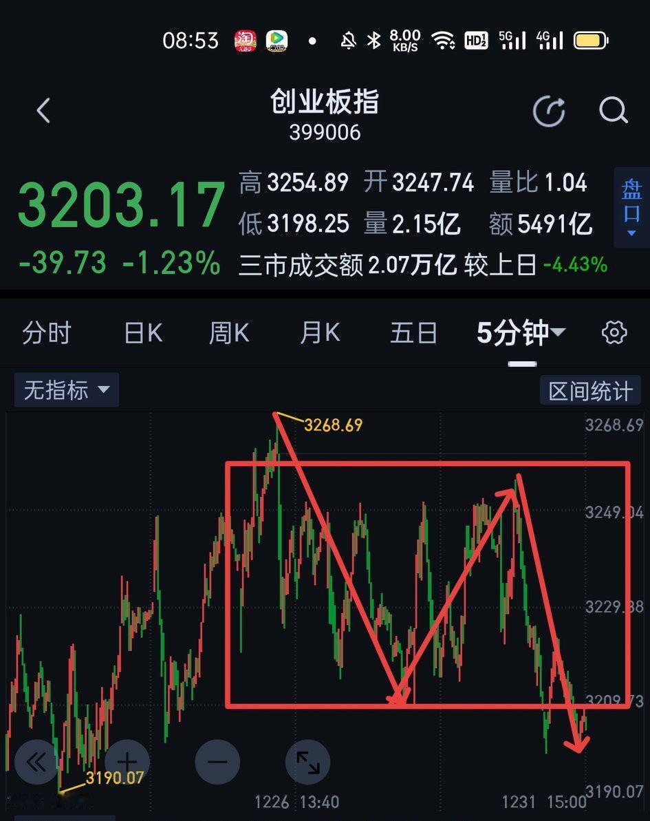 创业板,日线图上,先于其他指数走势处于日线一笔下的生长中。三十分钟图用传统技术分析是跌破颈线的结构,盘中曾经试图修复,但收盘无奈失守。五分钟图用缠论结构五分钟中枢已清晰可见(3255~3208)。下周就看围绕该中枢做何方向选择。周初只要不加速向下还可能围绕中枢震荡,加速向下跌则要防止反抽形成该中枢三卖点。