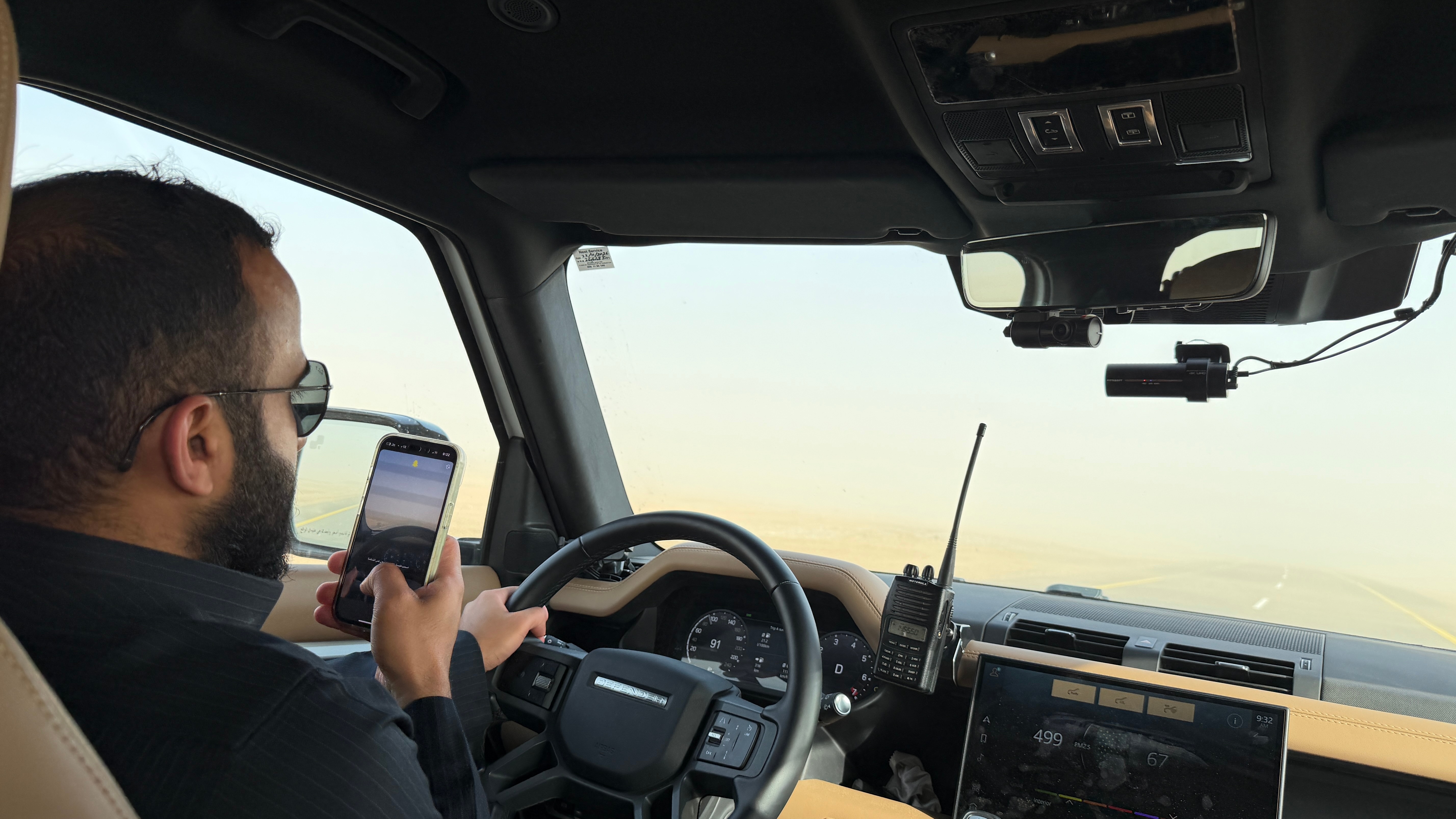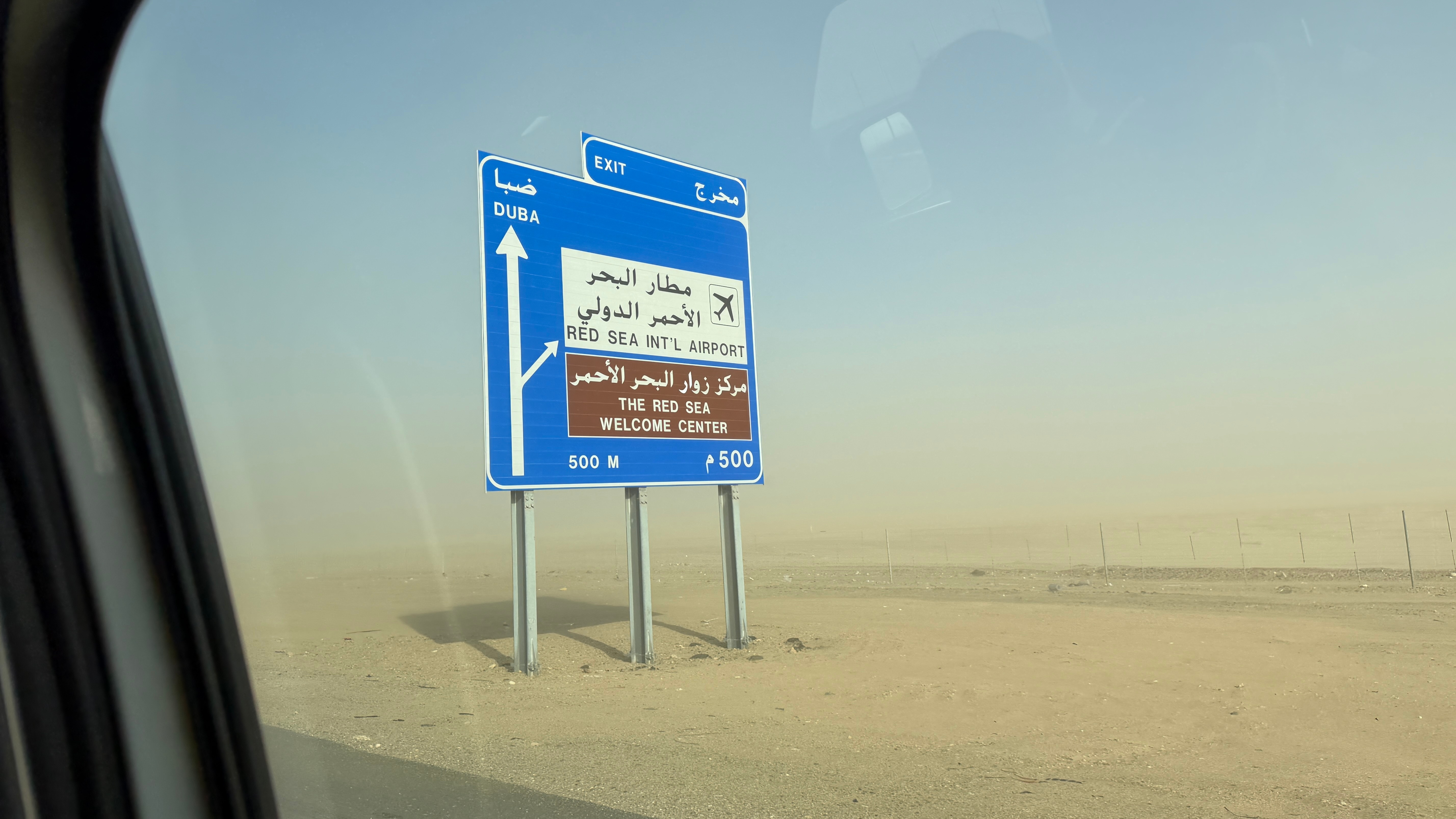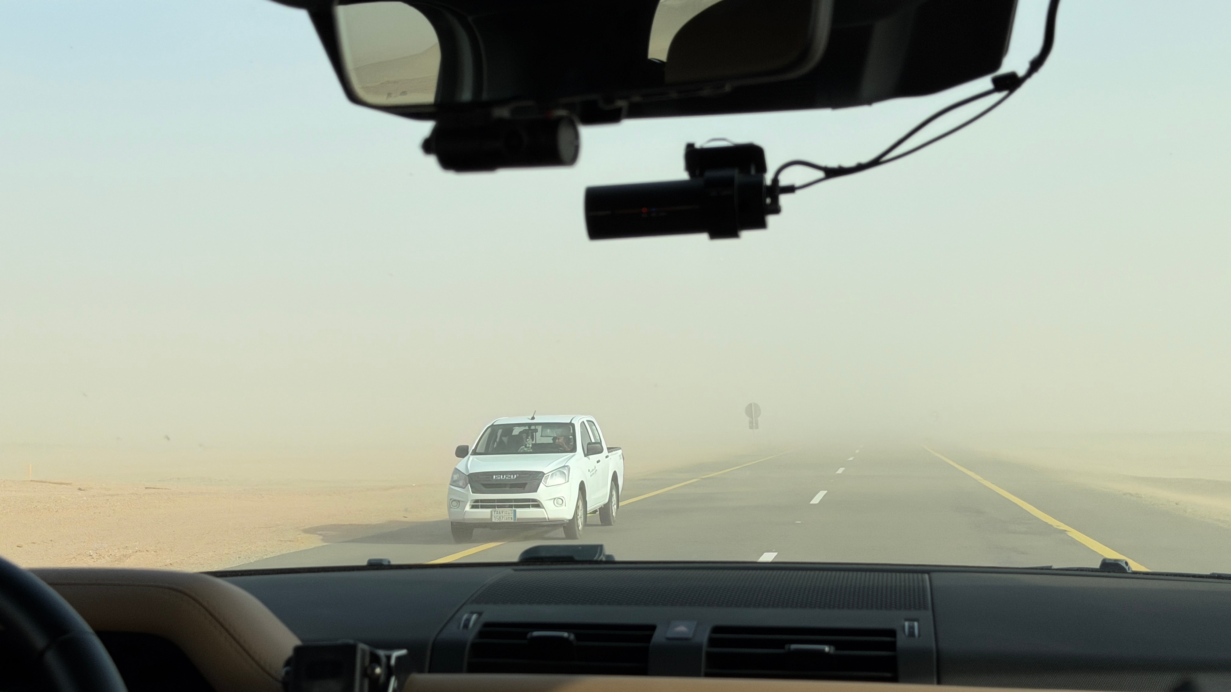 真·沙尘暴🌪️我都快看不见路了…司机小哥这戴着墨镜🕶️还能看见路吗还有空拍视频呢给我紧张的…… 沙特阿拉伯