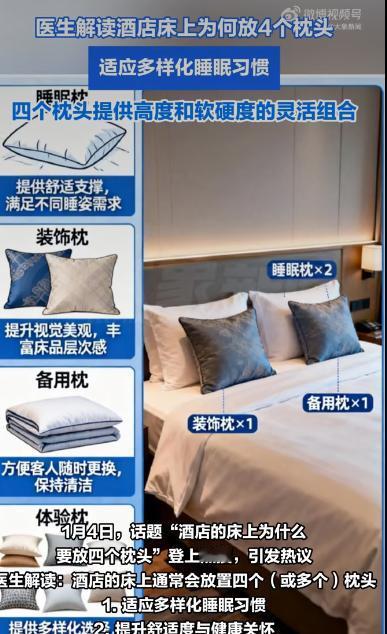 住酒店时,很多人会发现床头整整齐齐码着四个枕头,有人觉得多余,有人却用得得心应手