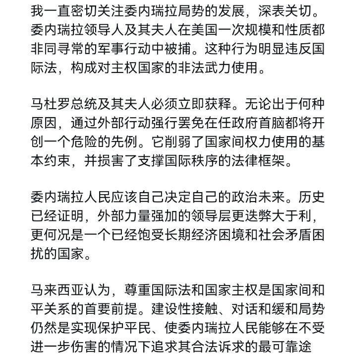 国际政坛突发重磅事件,一位民选总统的命运牵动全球视线,也让长期被忽视的国际规则问题再次被推上风口浪尖。 1月4日,一则震惊世界的消息从南美传出。委内瑞拉总统马杜罗及其夫人在首都加拉加斯的官邸,于凌晨2点被美军特种部队采取行动扣押。此次行动事先毫无征兆,其性质被普遍认为是美国对他国主权的直接军事干涉。 行动时间的选择极具策略性,意在利用深夜时分防卫相对松懈的空档。美方对此事的公开解释是所谓“打击毒品恐怖主义”,但这一理由在华盛顿内部和国际观察家看来都显得苍白无力,缺乏令人信服的公开证据支持。 事件发生后数小时,马来西亚总理安瓦尔率先发声。他公开表示正以“深切的关切”密切关注事态。这一表态看似外交辞令,但在当前敏感时刻,被视为新兴市场国家集体立场的风向标。安瓦尔的发言迅速获得广泛关注。 安瓦尔的立场并非孤立。分析认为,这反映了全球南方国家对于国际事务中强权政治日益增长的担忧。马来西亚作为东盟重要成员,其态度在一定程度上代表了该地区不愿选边站队、反对单边主义的普遍心态。 全球对美国此次行动的反应呈现出严重分裂。巴西总统卢拉公开谴责,称此举是将世界推向暴力的深渊。古巴方面则直接将其定性为“国家恐怖主义”。这些拉美邻国的激烈反应在意料之中。 值得注意的是,美国的传统西方盟友此次态度暧昧。欧盟仅发布了措辞谨慎的声明,呼吁“各方保持克制”,并未明确支持美方行动。这种沉默与过往的紧密跟随形成对比,显示美国此举在国际法理上难以获得广泛认同。 外界普遍将此次突袭与美国国内政治局势联系起来。临近2026年大选,现任总统特朗普面临复杂的国内矛盾与选情压力。有观察家指出,策划一场海外军事行动以凝聚国内支持、转移公众视线,是其可能的政治考量。 早在去年10月,就有消息传出特朗普曾授意情报机构针对马杜罗策划“秘密行动”。此次凌晨突袭可视作该指令的落地。然而,这种将国内政治困境转嫁为对外军事冒险的做法,引发了美国国内两党及舆论的激烈争论。 许多评论将此次事件与2003年的伊拉克战争相提并论。当年美国以一瓶疑似“洗衣粉”的物质作为所谓大规模杀伤性武器的证据发动战争。如今以“反毒”为由扣押他国元首,被视为是单边主义行动的又一危险先例。 美国长期倡导的“基于规则的国际秩序”正因其自身行动而遭遇空前信誉危机。美国智库研究员公开质疑,经此一事,未来还有谁会相信美国总统所承诺的“规则”?这种自我矛盾的行为正在削弱其全球领导力的根基。 马杜罗的命运已成为一个象征。他被扣押不仅关乎个人,更成为检验21世纪国际秩序究竟由规则还是由霸权主导的“试金石”。委内瑞拉驻联合国代表团已向安理会提出紧急审议要求,试图通过多边框架解决问题。 全球南方国家的集体觉醒是本事件最显著的影响之一。这些国家通过此事更加清晰地认识到,必须团结起来维护共同的主权安全与发展权益。中国的表态以及其在金融等领域提供的实质性支持,被视为对抗单边制裁、提供替代方案的重要力量。 您认为,这一事件是否会成为国际秩序走向的一个关键转折点?欢迎在评论区分享您的看法,也请点赞并分享本文,让更多人关注这一国际热点。