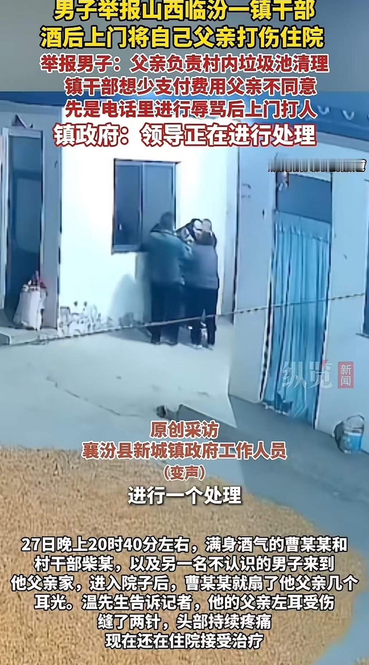 山西襄汾,一镇干部酒后上门殴打老人,老人受伤住院!而村干部之所以打人。是因为老人负责村里3个垃圾池清运,原本谈好9000元劳务费。可干了几个月后,镇干部突然改口只给5000元,老人不肯,村干部恼羞成怒,趁着酒劲上门教训老人! 在这个看似普通的小山村里,发生了一件令人扼腕叹息的事情:一位老人被村干部酒后殴打,受伤住院。事情的背后,却隐藏着我们每个人都曾遇到的那些“微妙的人性角力”和“制度漏洞”的阴影。这不仅仅是一场暴力事件,更是一面折射社会底层矛盾的镜子。 你可能会问,为什么一个本应平凡的村庄会演变成如此激烈的“冲突”?答案其实很简单:利益的失衡、信任的崩塌,以及制度的漏洞,让原本应简简单单的劳务合作变成了“谈判的战场”。老人辛勤负责村里的垃圾清运工作,原本双方达成的9000元协议,似乎也曾是彼此的信任证明。然而,仅仅几个月后,村干部的态度突然转变,从9000元降到5000元,这样的变故,无疑像是一记重击打碎了老人对公平的期待。 更令人愤怒的是,老人坚持维护自己的权益,却遭遇了酒后失控的暴力。那一刻,善良与正义似乎被粗暴践踏,原本应得到尊重的老人,却成为了暴力的受害者。这不仅仅是个人的悲剧,更是制度与人性的折射。难道我们的基层制度还存在“看人说话”、“以势压人”的漏洞?难道社会的公平正义,只能停留在口号上? 这起事件引发了广泛的社会关注,也让我们不得不深思:在一个追求和谐的社会里,弱者的权益究竟被放在哪个位置?面对利益的纷争,我们是否还能坚持人性中的善良?更重要的是,我们要问自己:作为旁观者、作为社会的一份子,我们是否可以成为改变的力量? 是的,正能量的力量就在我们每一个人的心中。每一次的关注、每一句的声援、每一次的正义呼唤,都是推动社会向善向上的火焰。这起事件提醒我们:制度的完善需要每个人的监督与参与,法律的底线需要全民的守护。我们不能让类似的悲剧再次发生,也不能让“人性中的阴暗”成为常态。 让我们用行动点亮希望,用声音唤醒良知。因为,只有当我们每个人都站在正义的一边,社会才能变得更加美好。这不仅仅是一次事件的反思,更是一次灵魂的唤醒。愿那位老人早日康复,也愿每一位在基层默默付出的人,都能得到应有的尊重与保护。我们期待,一个充满温暖与正义的社会,正等待着我们共同去创造。殴打古稀老人 殴打中老年 殴打中风老人 广东老人被打 殴打他人 江苏老人被打 醉酒殴打他人