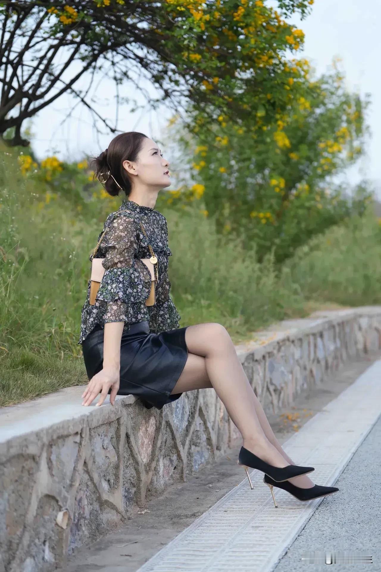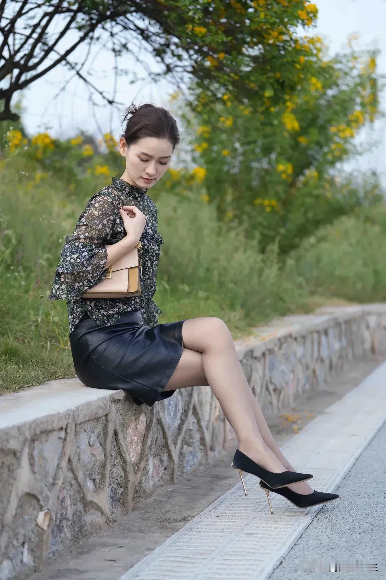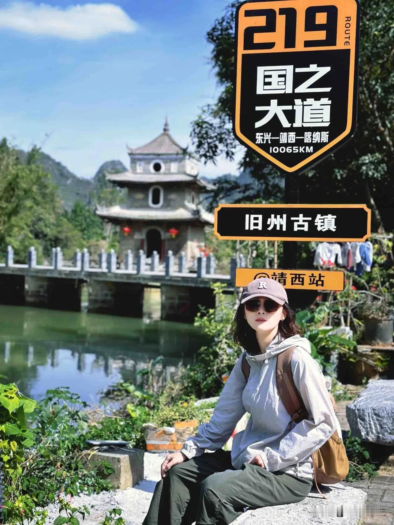 在古镇的石桥上,优雅地坐着,享受宁静的时光。