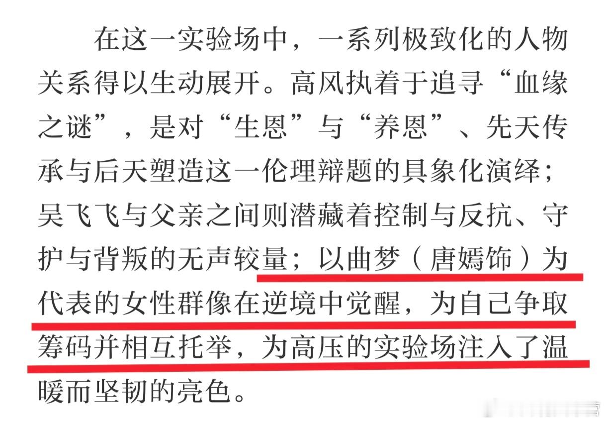 北京日报——《人之初》剧评以曲梦(唐嫣饰)为代表的女性群像在逆境中觉醒,为自己争取筹码并相互托举,为高压的实验场注入了温暖而坚韧的亮色。人之初唐嫣曲梦 (好角色一定会被看见!