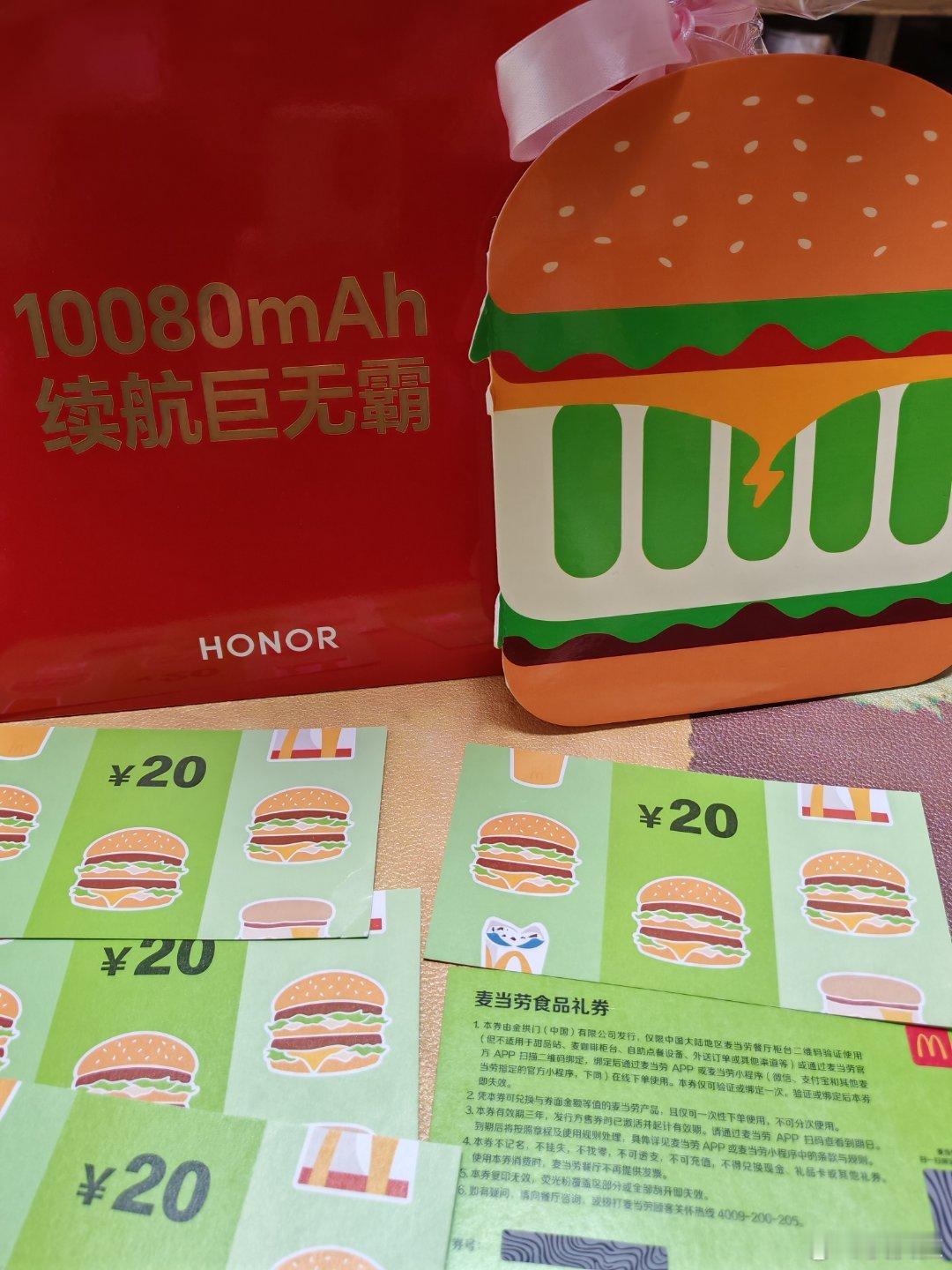 今天,我收到了荣耀Power2新品发布会邀请函,打开一看,它妥妥的是一个“户外巨无霸”!说实话,荣耀每次新品发布会创意十足的邀请函,都特别让人期待。这次寄来了是一个巨大的🍔,里面还有多张麦当劳食品礼券,真正做到量大管饱。10080mAh续航巨无霸,值得期待!科技先锋官