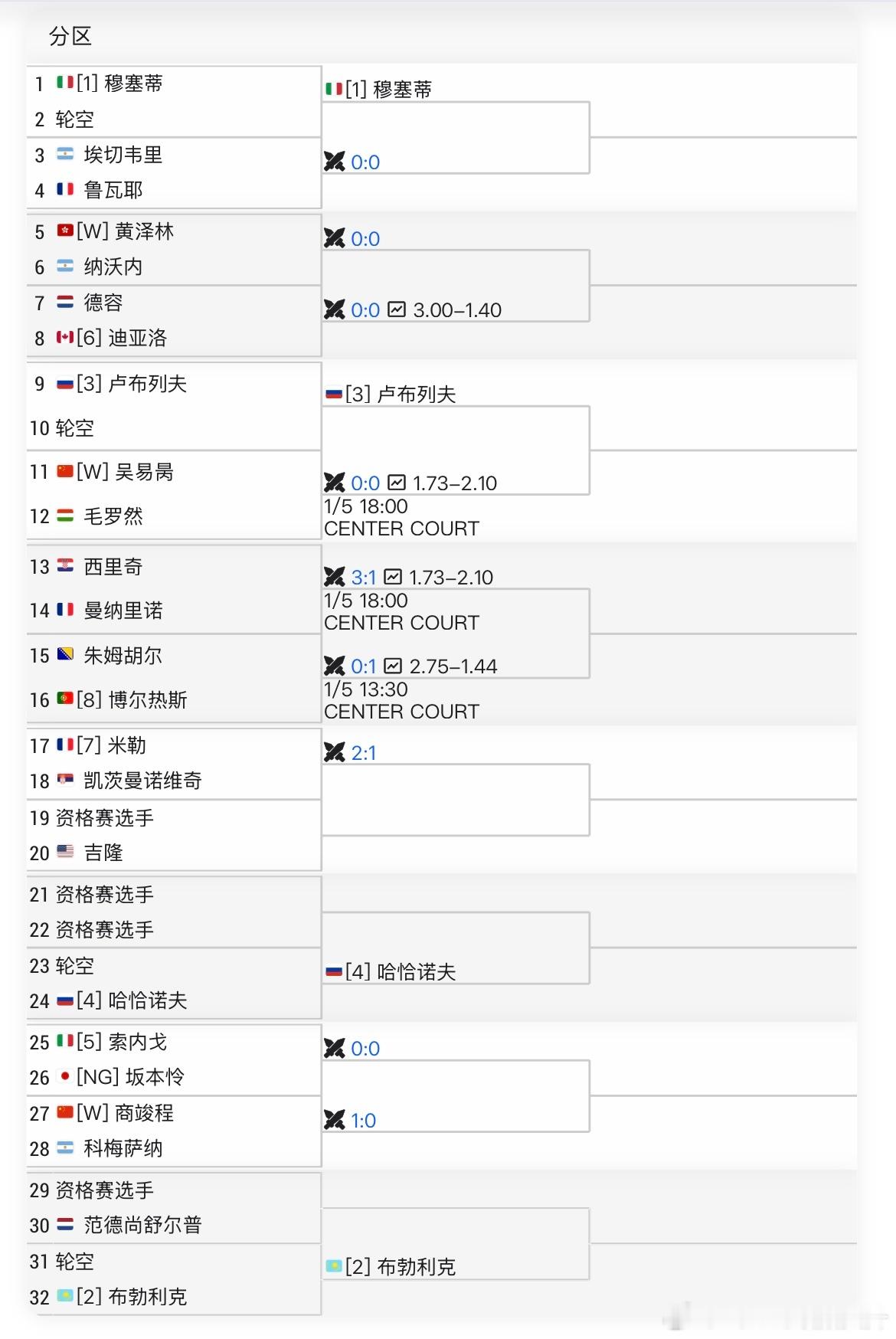 🔵ATP250香港男单正赛签表【WC】🇨🇳商竣程vs🇦🇷科梅萨纳【WC】🇨🇳吴易昺vs🇭🇺毛罗然胜者次轮将战【3】🇷🇺卢布列夫网球2026赛季中国网球