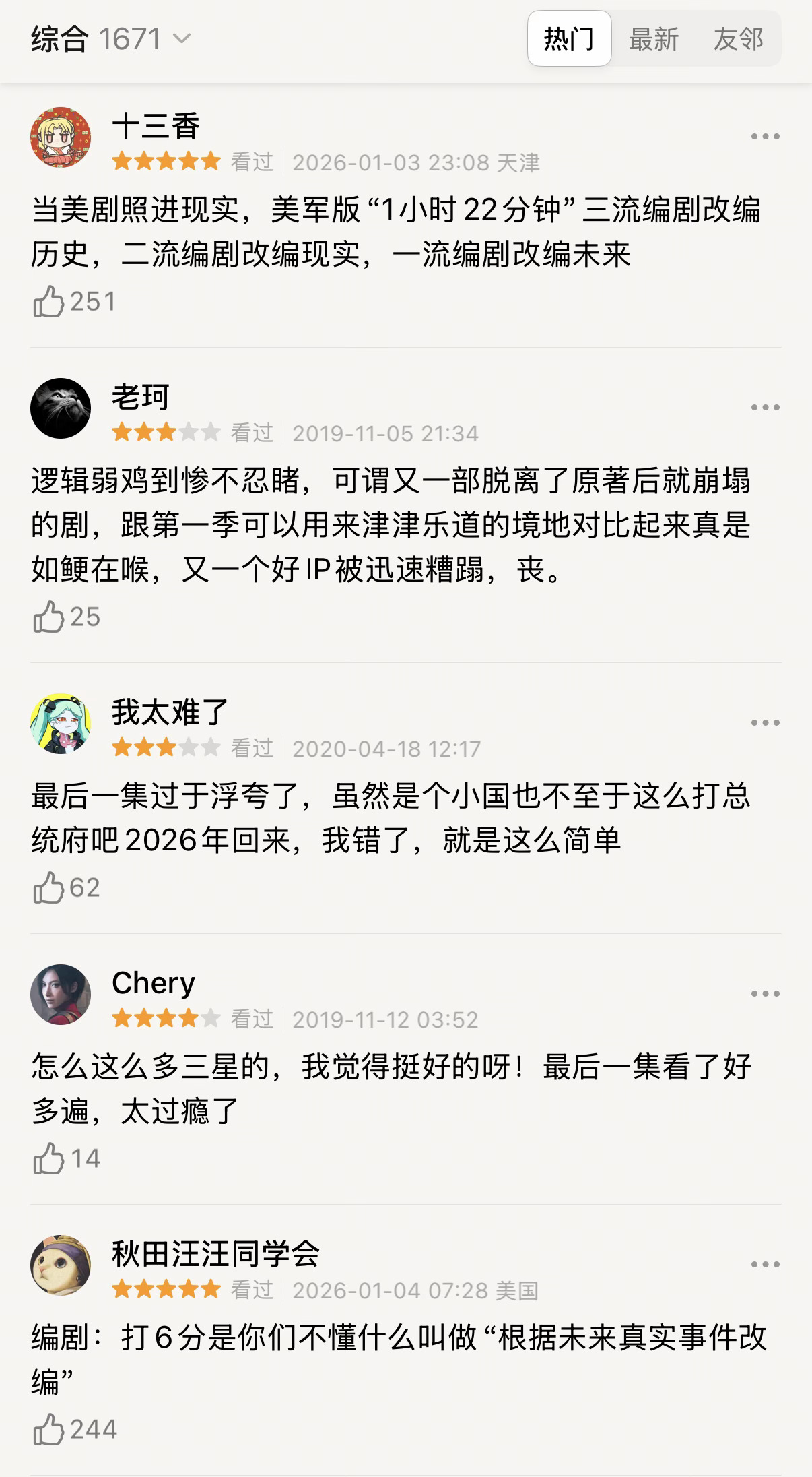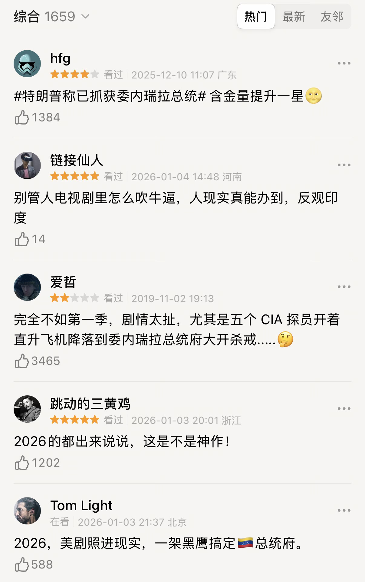 救……🆘🆘约翰·卡拉辛斯基主演美剧《杰克·莱恩》第二季闯入豆瓣热榜第一。此前遭到剧迷疯狂吐槽剧情太扯,今朝风评逆转「美剧照进现实」讲述CIA分析师Jack Ryan来到南美洲委内瑞拉丛林调查被偷运的武器,但在调查过程中主角发现了委内瑞拉总统正准备袭击美国,而他和同事得解决这场包括美英俄委四国在内的大阴谋......美剧杰克莱恩闯入豆瓣热榜前3杰克莱恩委内瑞拉