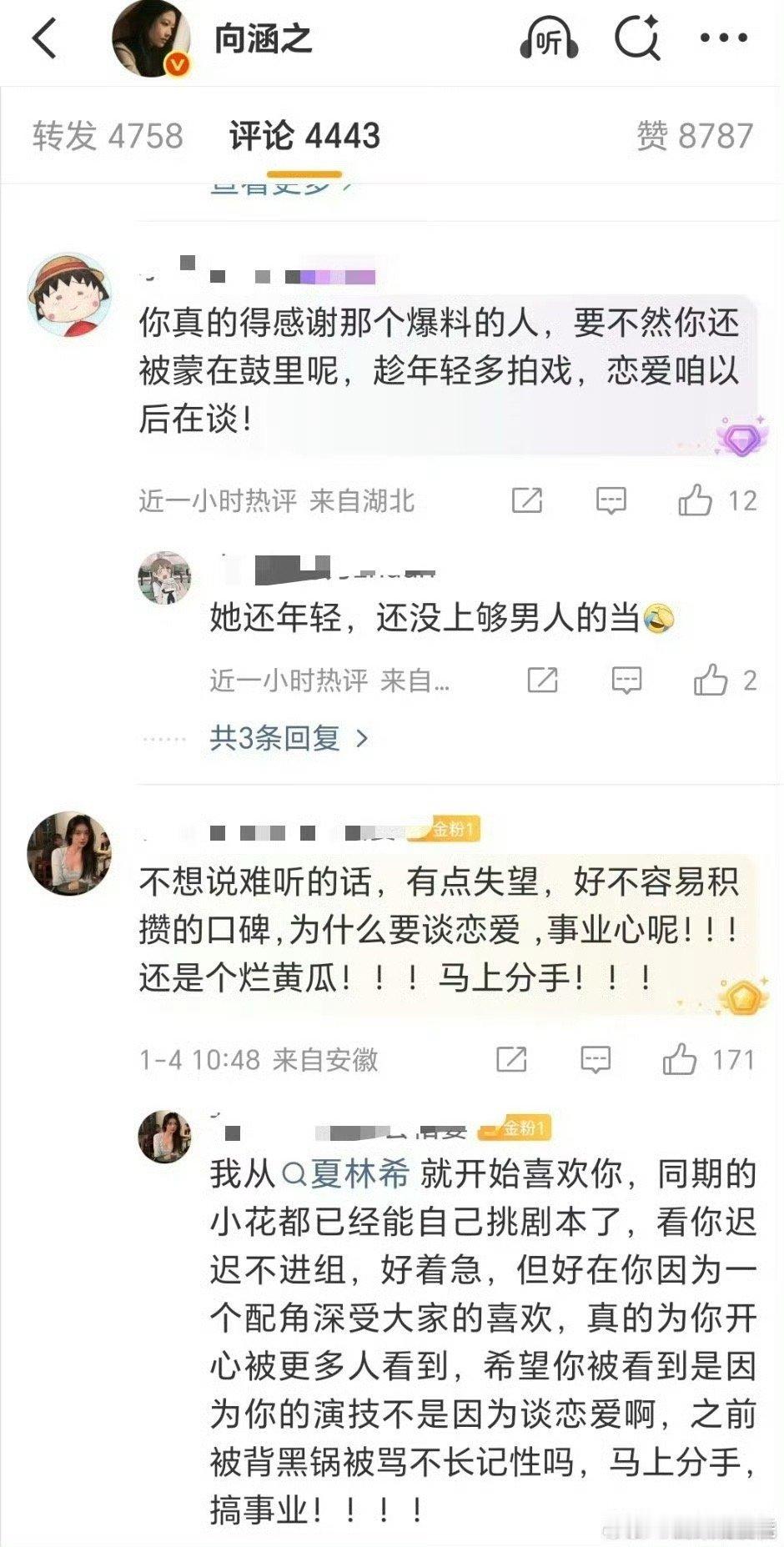 粉丝要求向涵之分手向涵之的评论区里粉丝都在要求向涵之分手,花粉事业心🈶