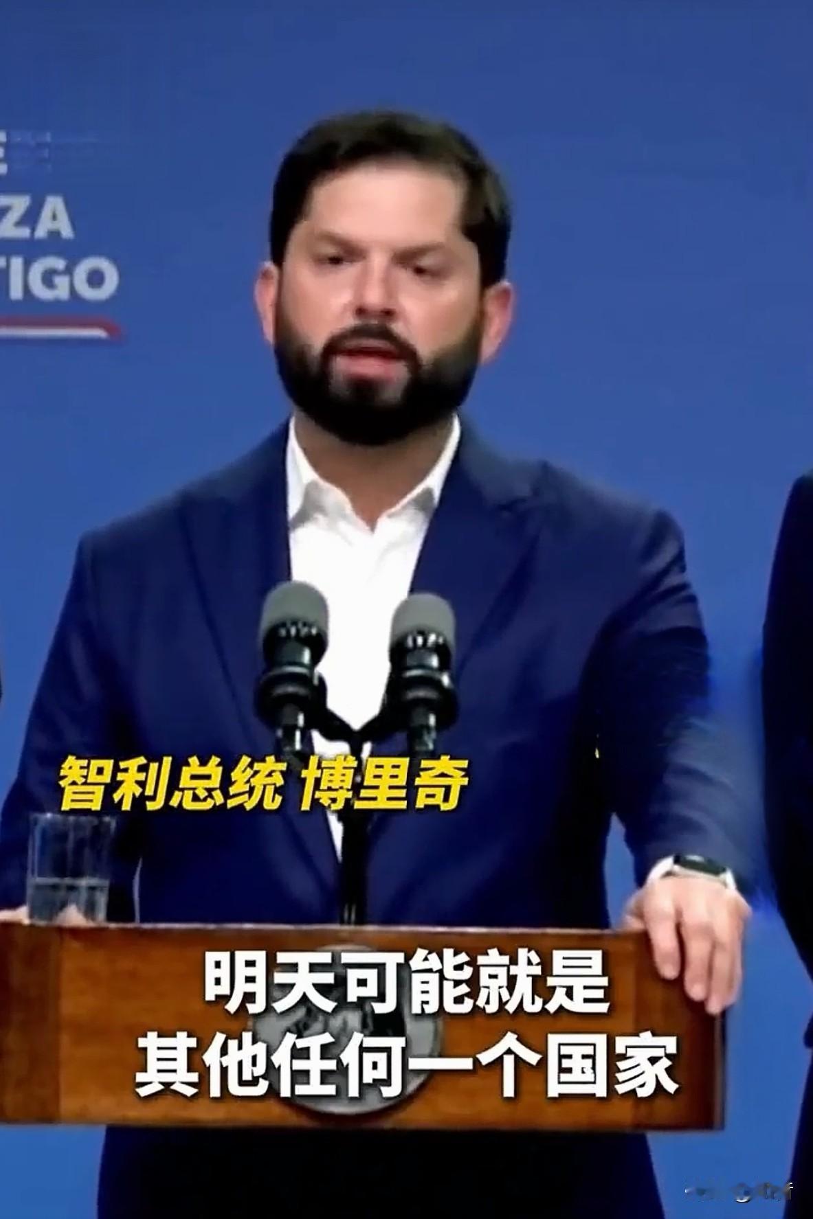 智利总统博里奇! 他非常的有勇有谋。 他非常的有个人担当。 他提出今天是委内瑞拉。 明天就可能就是另外的国家。 他的这句心里话成为全球的焦点。 不得不说,智利总统很明智,分析客观问题很透彻。把美国霸权看的透透的,看来他们没少受美国欺负。 利智总统说的话,值得全球国家深思,都不敢说的心声,他敢说。说真心话,只要大家相互扶持,美国霸权主义算个屁。 团结一心,共同反制美国霸权主义,就算美国再厉害。他们也无法攻破这层坚强有力的防御机制。