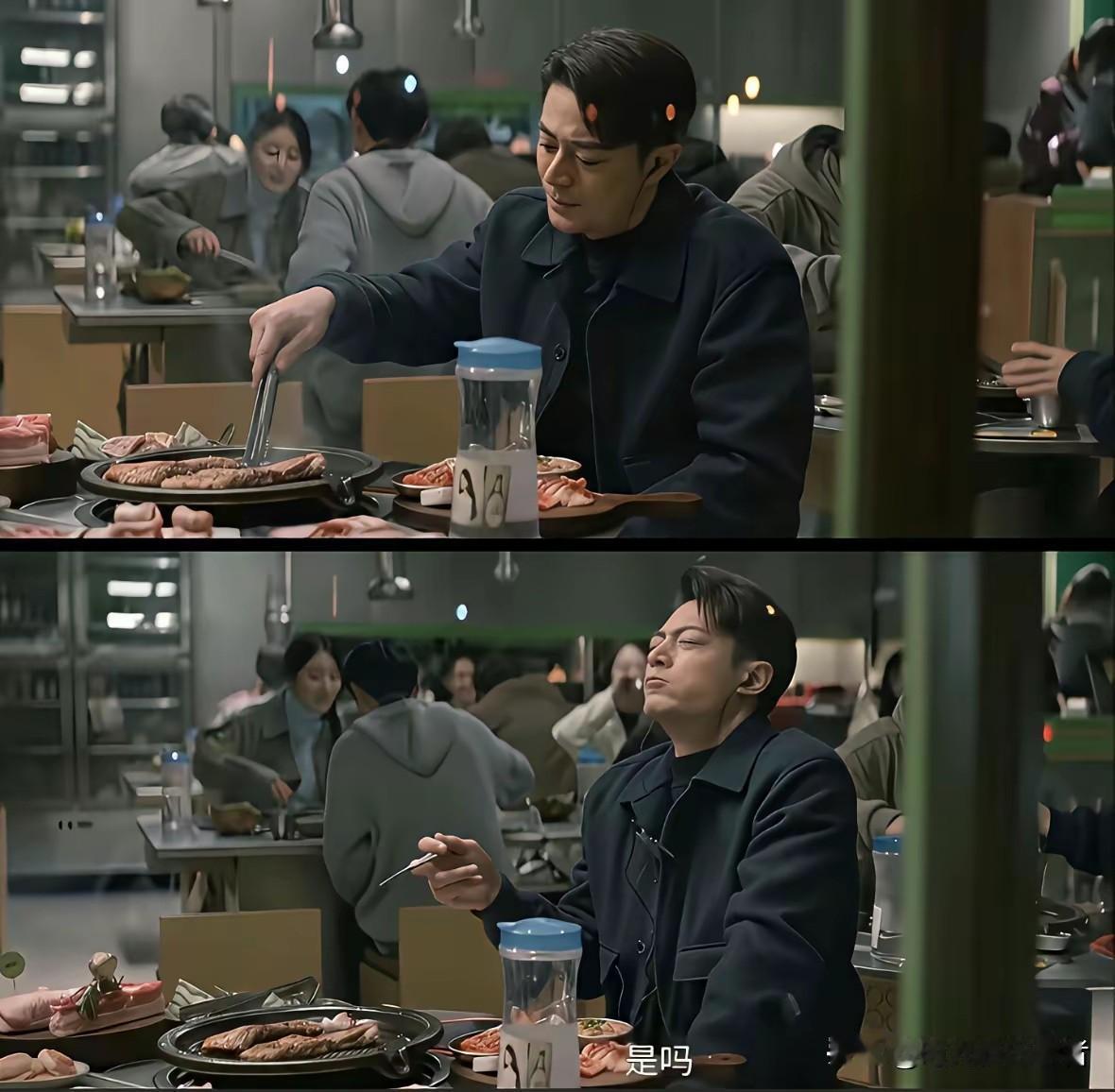 霍建华真是有氛围的男人,拍戏吃烤肉这样子真是太生活了,帅气的男人很多,但是有趣的