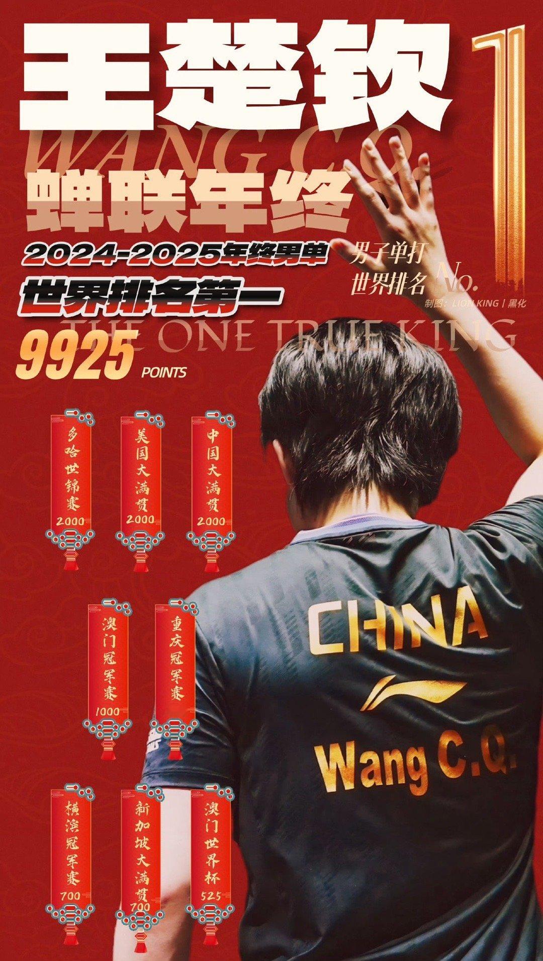 🦁王楚钦2025年收获15冠🏆🏆 中国乒乓球首位左手世锦赛男单冠军 中国乒乓球首位左手世锦赛金满贯 突破职业生涯100冠王楚钦非常棒 👍👍新的一年,请继续满怀热忱,勇敢出发。愿你过尽千帆仍有星辰可追、山海可赴;祝你心有所悦、业有所成,万事皆可期!
