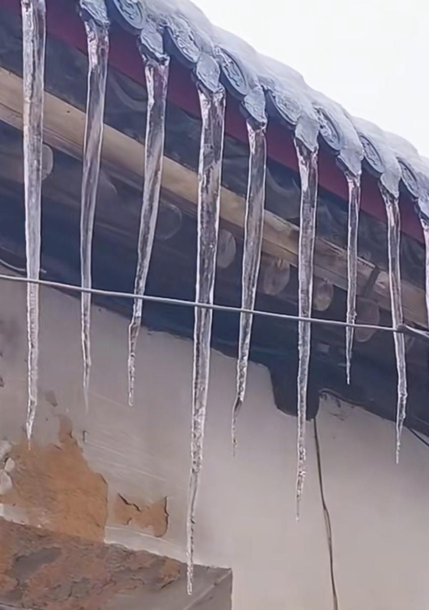 由于一场大雪,冰溜子又出现在房檐下,城内一些临建的彩钢瓦口也可见到。小时候这是一种简易冰棍,小心翼翼从房上取一根,那就是冷饮,小孩子见了它忍不住有吃一口的冲动。同时它也是一种玩具,玩打仗游戏时它就是武器,可以近身对抗,也可以远程投掷。随处可见的冰溜子给冬天带来了许多乐趣。现在的孩子可玩的太多了,要学习的也太多了,很难体会到冰溜子的乐趣。