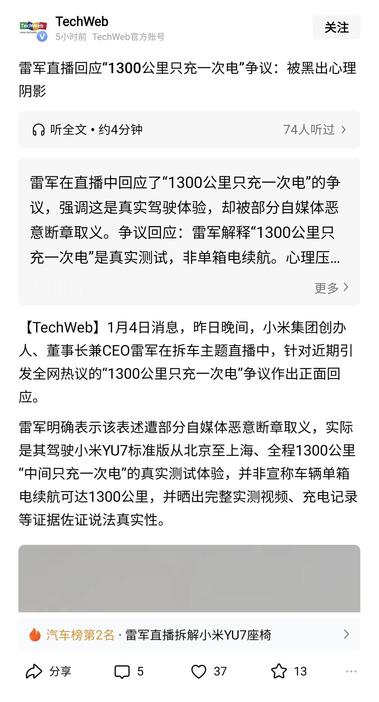 原来大佬被喷也会破防,社交媒体让我们普通人对大老板和网络大V迅速祛魅。 今天刷到的两个新闻都挺有意思,一个是雷军亲自下场解释1300公里直充一次电,说自己被黑出了阴影。一个是金灿荣教授被网友喷对委内瑞拉局势又判断错误后,直接晒出旧文截图,怒怼网友睁开小眼瞧瞧。 说实话我还挺惊讶,在我眼中,大老板也好网络大V也好肯定有远超于我们普通人的见识和格局,不会跟我们普通人一样会被喷之后就破防,没想到大佬们跟我们也没啥区别。在自媒体的今天我们似乎对网络名人在迅速的祛魅,不再认为传统观念中的成功者只是我们的仰望对象,而是我们普通人也可以对其随意褒贬。 想了想就知道原因了,传统媒介上企业家和名人通过媒体报道或者专访等方式呈现,他的形象是被媒体包装后的结果,所以我们会认为成功者都是完美和高大上的形象。 但是自媒体迅速缩短了这些公众人物与我们普通人之间的距离,他们一方面通过自媒体获取了巨大的流量,但另一方面也要承担流量带来的反噬。 我觉得这种祛魅对普通人来说是好事,他让我们更加平等客观的看待这些成功人士,也让大佬们用平等的眼光与普通人沟通交流。