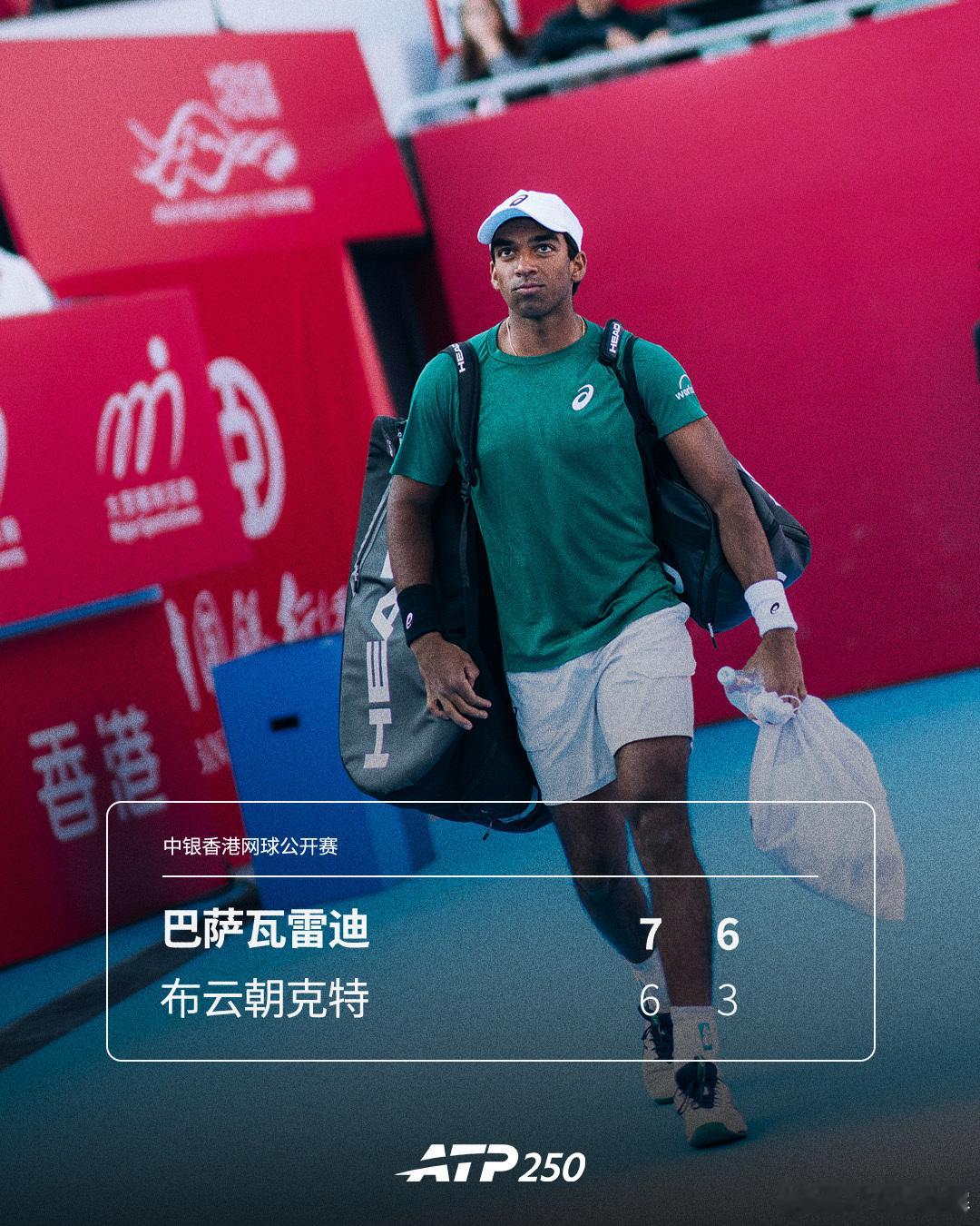布云朝克特无缘晋级ATP250中银香港网球公开赛资格赛首轮, 布云朝克特6-7(9) 3-6不敌巴萨瓦雷迪,无缘晋级。📷:中银香港网球公开赛网来不息ATP