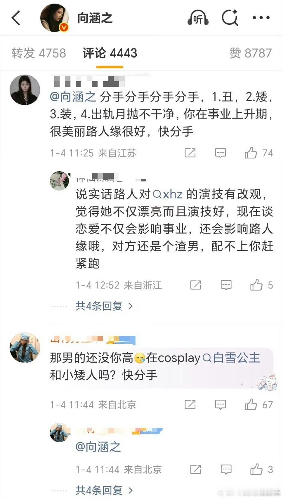 粉丝要求向涵之分手粉丝真是苦口婆心