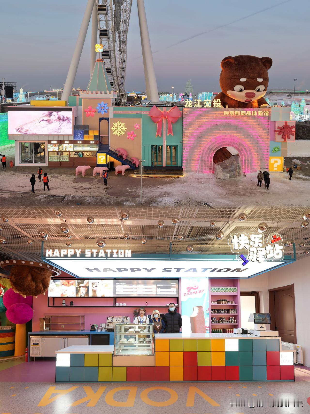❄️哈尔滨冰雪大世界开园啦! 要不要冲一波,今年真是突破了往年的规模,太懂我们了,120万平的园区,40万立方米冰雪堆成童话,但最绝的是新开了龙江交投俄罗斯商品体验馆,外形就像一个巨大的俄罗斯方块,里面不但能买到好多俄货,还有不少好玩的!伏特加咖啡当然要尝尝,还能换装俄罗斯公主,门口拍照真的好好看!特别是房顶的小熊,超级可爱!好多可爱的文创根本停不下来。 更绝的还联动了运粮河冰雪营地!白天在冰雪大世界逛中华巴洛克街区、看十二生肖冰雕,逛俄罗斯商品体验馆,晚上开车半小时去运粮河,直接泡在温泉池里吃火锅。雪地里热气腾腾的麻辣烫,配着雪花飘落,这才是冬天该有的样子,不用人挤人,不用冷到怀疑人生,就静静看雪、喝热茶,治愈感拉满。第二天醒来还能玩冰钓和雪地摩托!这个哈尔滨又给大家整活了!安排!哈尔滨雪大世界 冰雪大世界旅游 哈尔滨冰雪天地