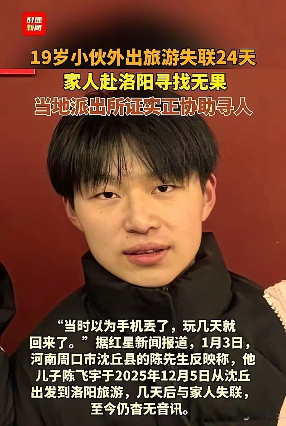 19岁男孩失联26天,曾现身洛浦公园,父亲落泪下跪:能找到孩子砸锅卖铁也愿意。透露两三个月前失恋,可能有精神压力。 这么多天过去了还没找到,父母求助了媒体,孩子爸爸透露几个细节: 男孩出去老君山失旅游是突然决定的,当天早上6点就出发。还说谎有4人去的,其实是他单独一个人,全程没出现任何同行朋友的身影。 当他还在洛浦公园附近,接到奶奶电话谎称已经买好了回家的火车票坐上车了。 两三个月前失恋,之前心理压力比较大有点抑郁,曾带他去看过心理医生吃药。 这里提到男孩两次跟家人说谎,自己单独一人去说成有4人,还说谎买好回家的火车票。似乎是有意出走。 全家跨省寻人,已经二十多天没合眼,这几个细节也很让人揪心,毕竟失联这么多天了。 好端端的怎么就失联了?希望他只是因某些原因暂时无法与外界联系,千万不要出事。让担惊受怕的家人放下这颗悬着的心。