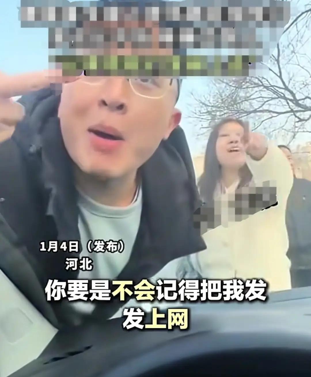 求锤得锤,河北骂人的那一家如愿以偿,嚷嚷着让司机把视频发到网上去,这下好了,丑陋的面孔终被网友看见,也算是火了一把。 事情很简单,河北张先生驾驶车辆变道时与出租车发生剐蹭,出租车司机还没说什么,车上的乘客先炸了毛。 出租车上下来四名乘客,是一家人,可能是因为发生交通事故会耽误他们的行程,下车后就对张先生一顿输出。 张先生见到气势汹汹的四人也没敢下车,为了保护自己,打开手机录像功能,记录下四人嚣张的画面。 眼镜男是竖中指又做鬼脸,中间还夹杂着用英文谩骂。 年轻女子气势全开,骂的更难听,指着张先生骂的连十八辈祖宗都带上了,语音转文字都得用马赛克遮挡。 老一点的女子见张先生打开摄像头,嘴里叫着“拍拍拍,我让你拍”,撸起袖子想要打人。 不过,他们提了一个要求,就是让张先生把他们发到网上去,可能是想火吧,也算是如愿以偿了。 开车发生剐蹭本是交通事故中最常见的事情,谁的主责谁的次责可以由交警定责,但故意谩骂人身攻击已属违法行为,让有理变成了无理。 本该有更好的解决方法,却用最丑陋的面孔来解决,不想火都难,但这种火只会引火上身。