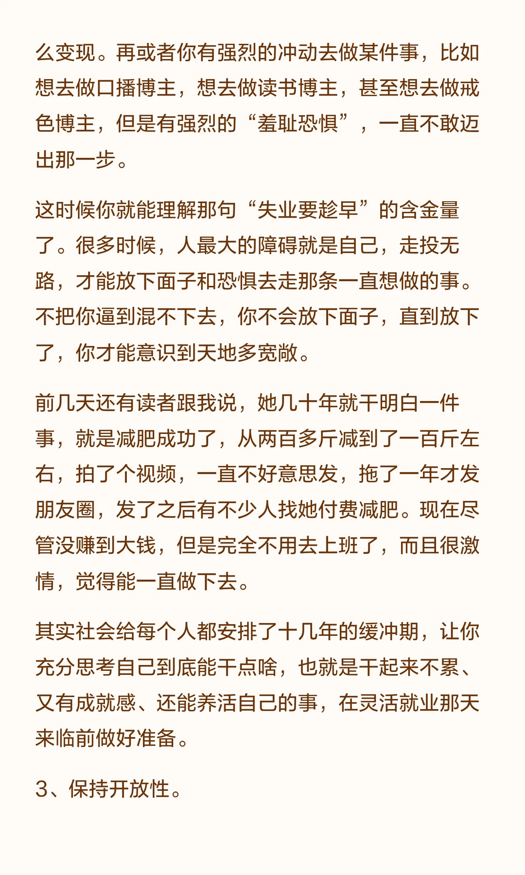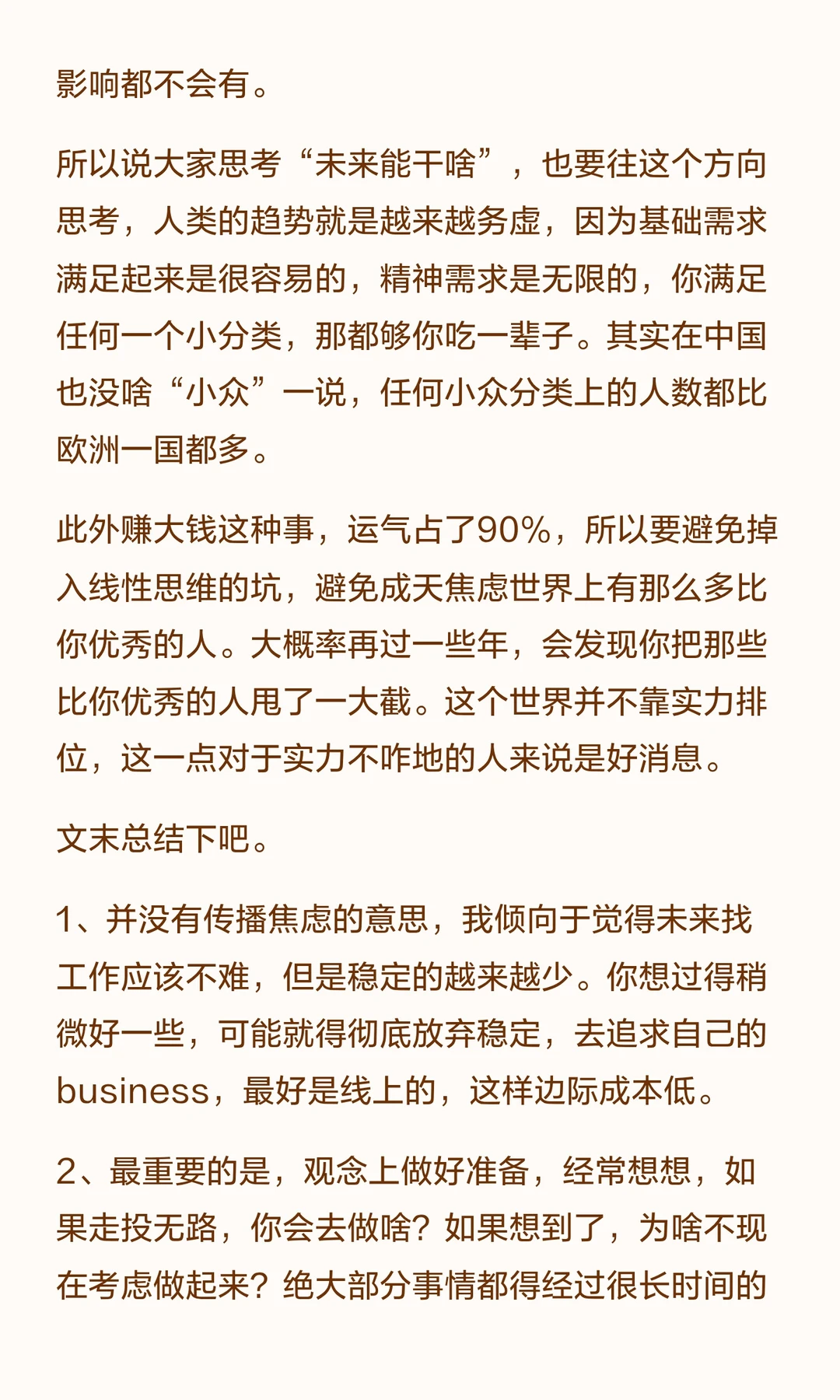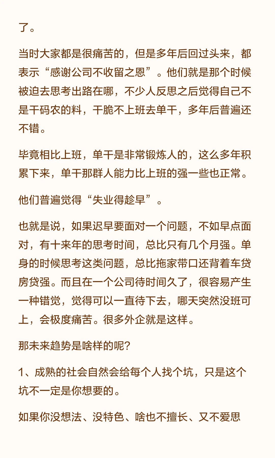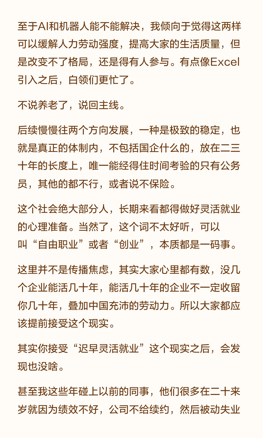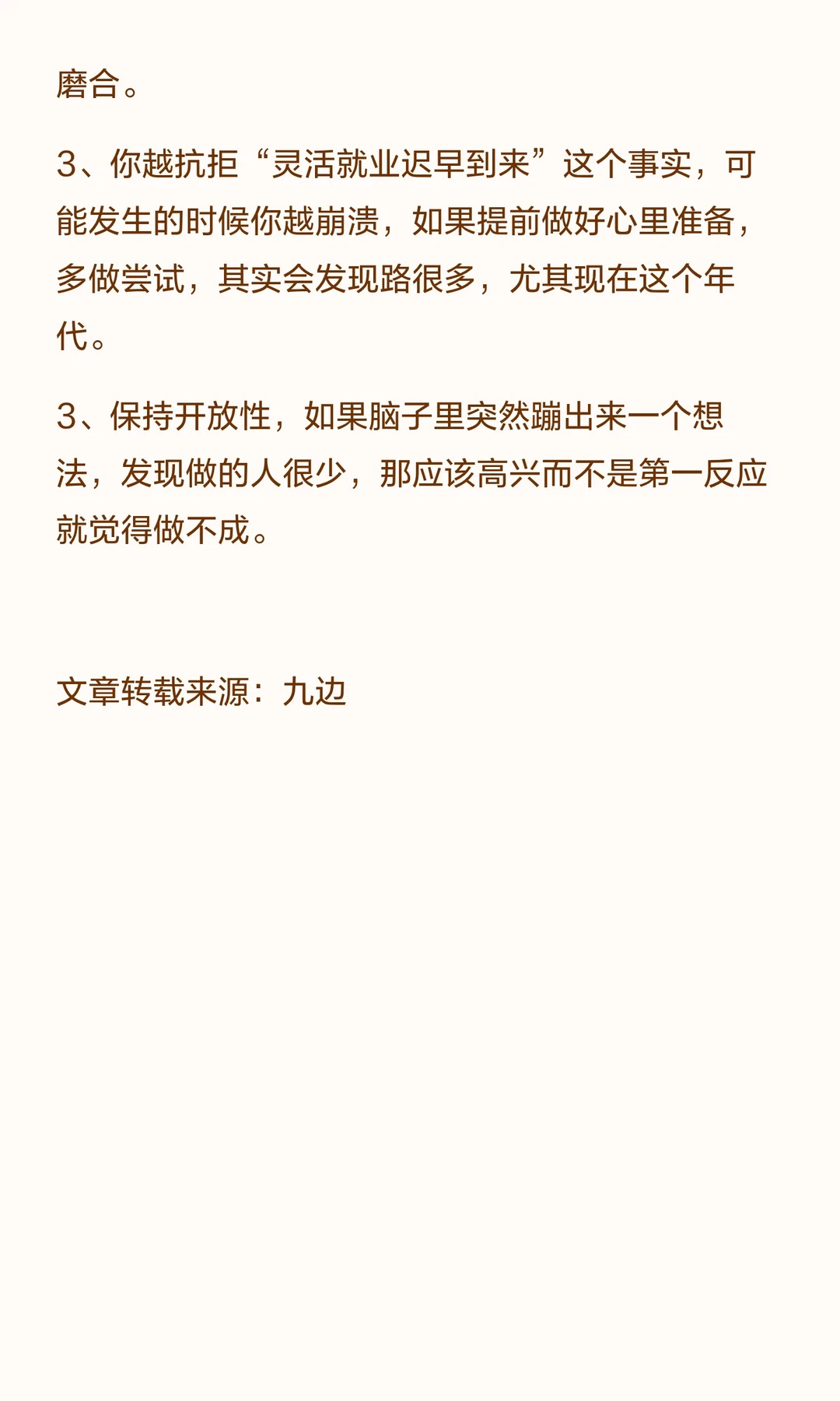 这里并不是说未来经济状况不好大家都没工作,所以灵活就业。而是说,工作越来越不稳定是常态,越早接受生活可能越容易一些。