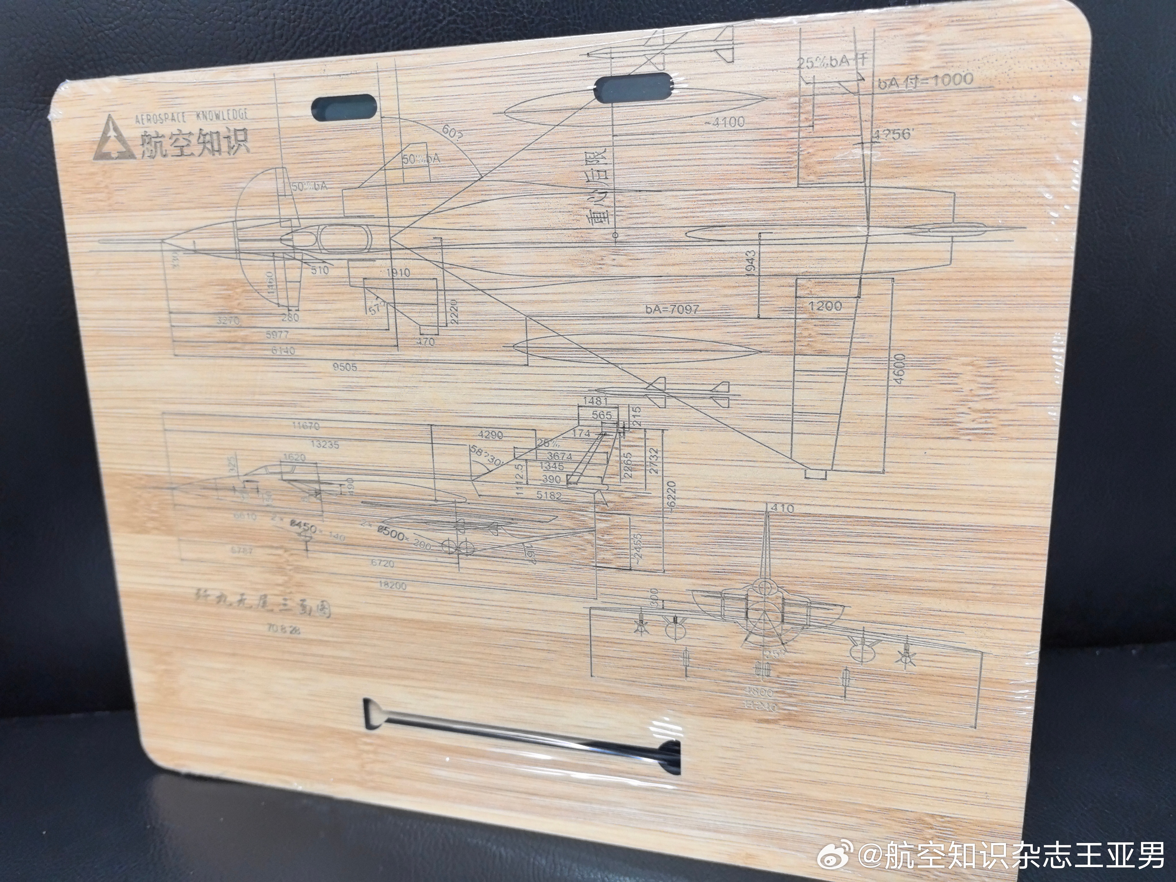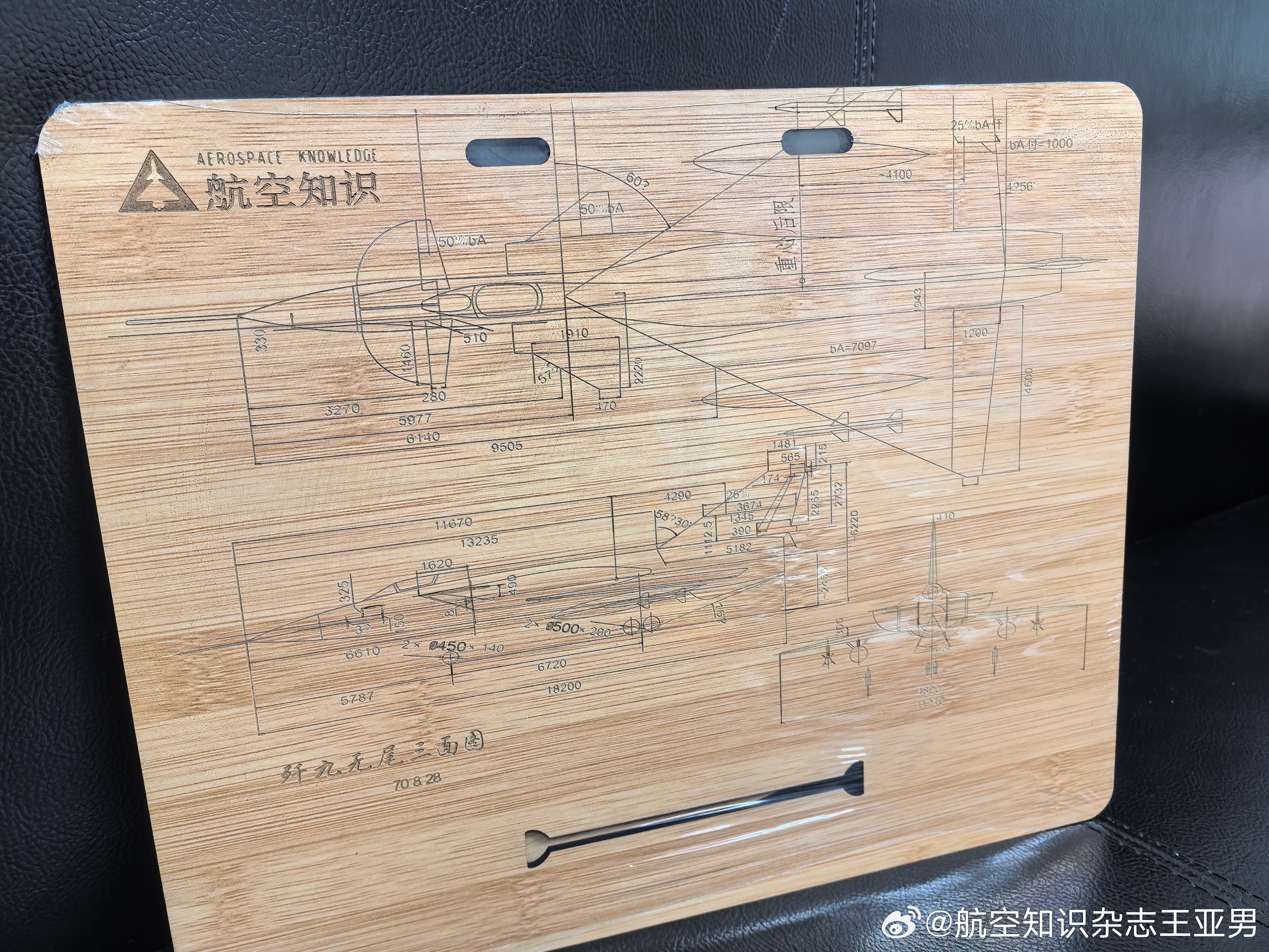 #航空创作计划# 2025年快过完的时候,突然在微博私信里发现一则留言。留言是一位女士发来的,她说自己的儿子很喜欢《航空知识》,想要2024年《航空知识》订阅时随刊附赠的月历托架,就是那款用激光雕刻有20世纪60年代歼9鸭式加“小胡子”前翼方案图案的那个。时间过去那么久,我印象里这款歼9“小胡子”前翼方案的背托早就没货了,但我还是找了市场部的同事,请他们去看看库存。同事们先是在库房搜罗了一圈,没有找到,库存显示也是零。我于是照此回复了那位女士。结果那边回复说孩子特别喜欢那个图案,虽然给他买了后来的歼20图案款还是不行,仍然对那个老款耿耿于怀。甚至于找遍了网络也没有发现货源——我们当年就做了那么一批用于附赠,并没有转售,别家自然没有。孩子急得不行,念着希望2025圣诞老人能在梦中满足他的愿望,弄得妈妈也有点焦虑。我这边也有点急,又找市场部让人家想想办法,市场部说即将盘库,到时所有货底子都会倒腾出来,看看有没有奇迹。结果这次翻腾真有奇迹,居然找到了一个当初制作时的封样样品——仅此一个。我立即回复那头说我们决定赠送给孩子,遂了他的愿望。我至今不清楚孩子为啥对那个老歼9方案如此偏好,也许是外形独特,也许是挂环设计,也许是他对那段曲折历史有所了解?无论如何,我们满足了一个小小爱好者的愿望,自己也很满足,很开心。
