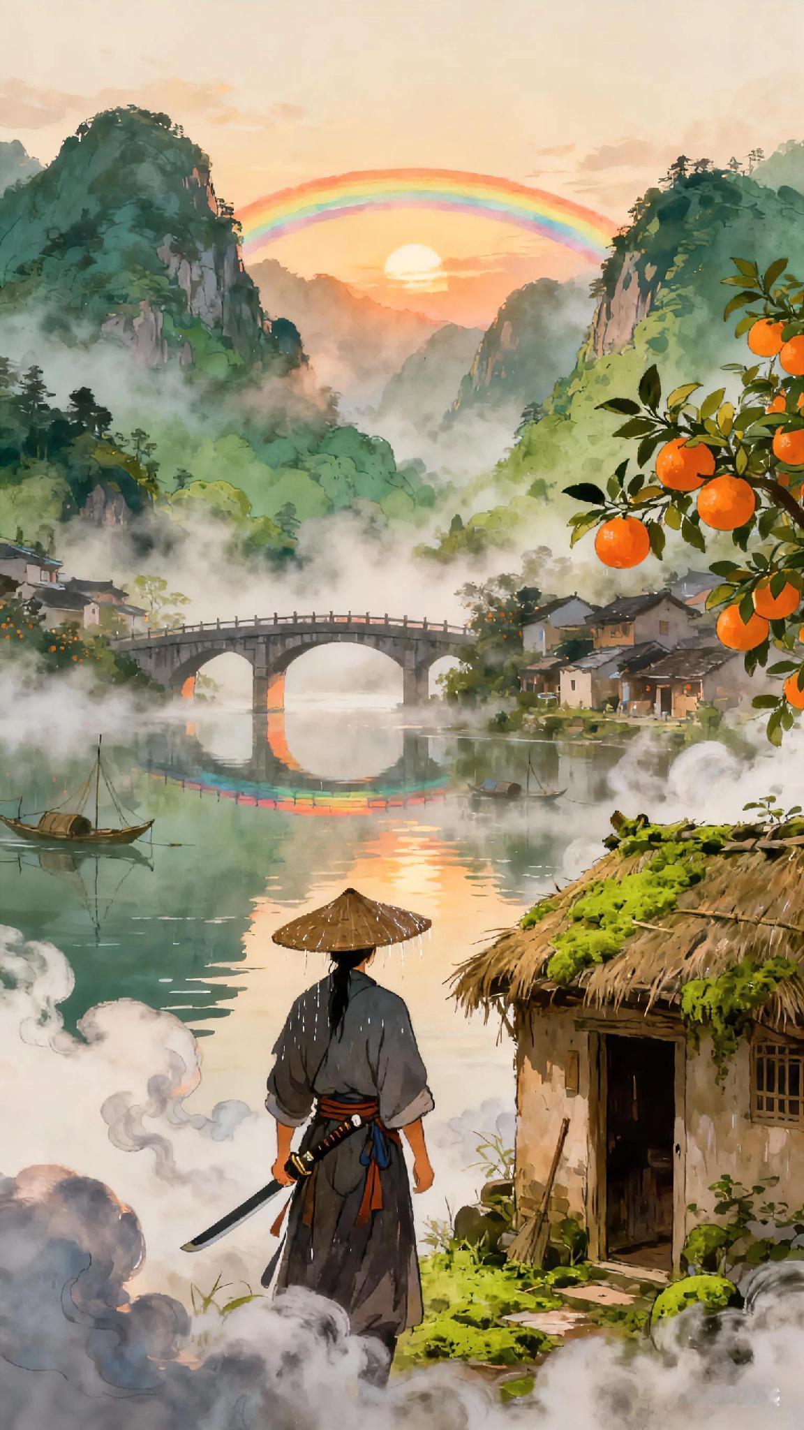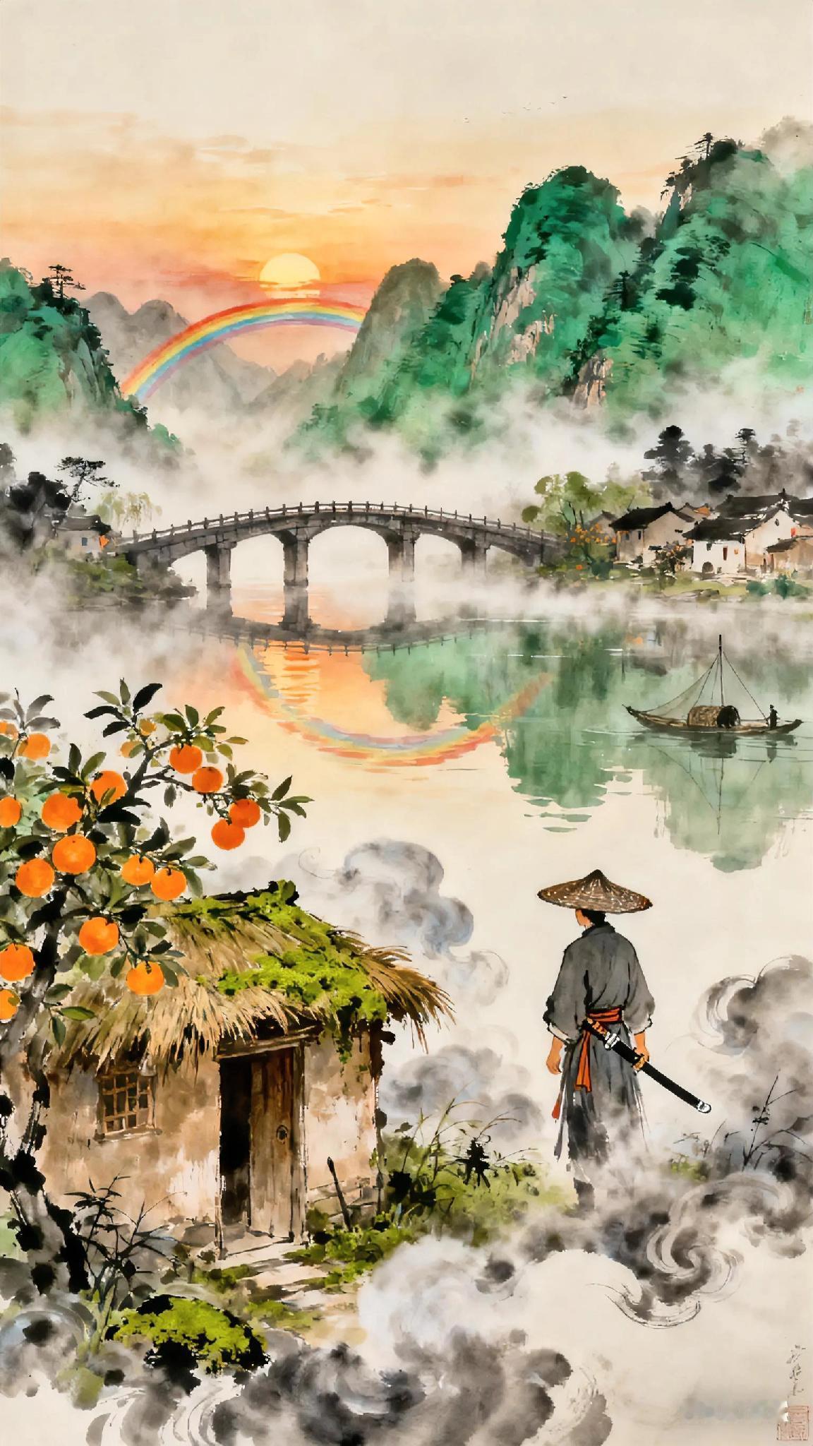 《洞仙歌》宋、林外。 飞梁压水, 虹影澄清晓。 橘里渔村半烟草。 今来古往, 物是人非, 天地里, 唯有江山不老。 雨中风帽。 四海谁知我。 一剑横空几番过。 按玉龙、 嘶未断, 月冷波寒。 归去也、 林屋洞天无锁。 认云屏烟障是吾庐, 任满地苍苔, 年年不扫。 《洞仙歌》现代译文: 这座横跨水面的高桥如彩虹倒映在晨光中,橘林边的渔村笼罩着朦胧雾气。 时光流转,人事变迁,唯有天地间的青山绿水永恒不变。 我戴着遮雨斗笠漂泊四海,无人知晓。 曾多次仗剑凌空,腰间玉龙剑鸣未绝,在冷月寒波间穿行。 归去吧,那云雾缭绕的林屋洞天从不闭门,这云烟屏障后的草庐就是我的家,任凭门前青苔丛生,岁岁枯荣。 诗词歌赋 天天古诗词 你记得最深的一首古诗词是什么 你最喜欢的一句古诗词是什么