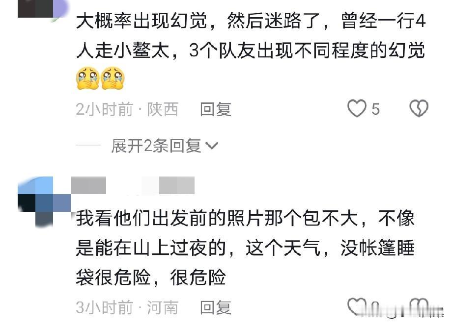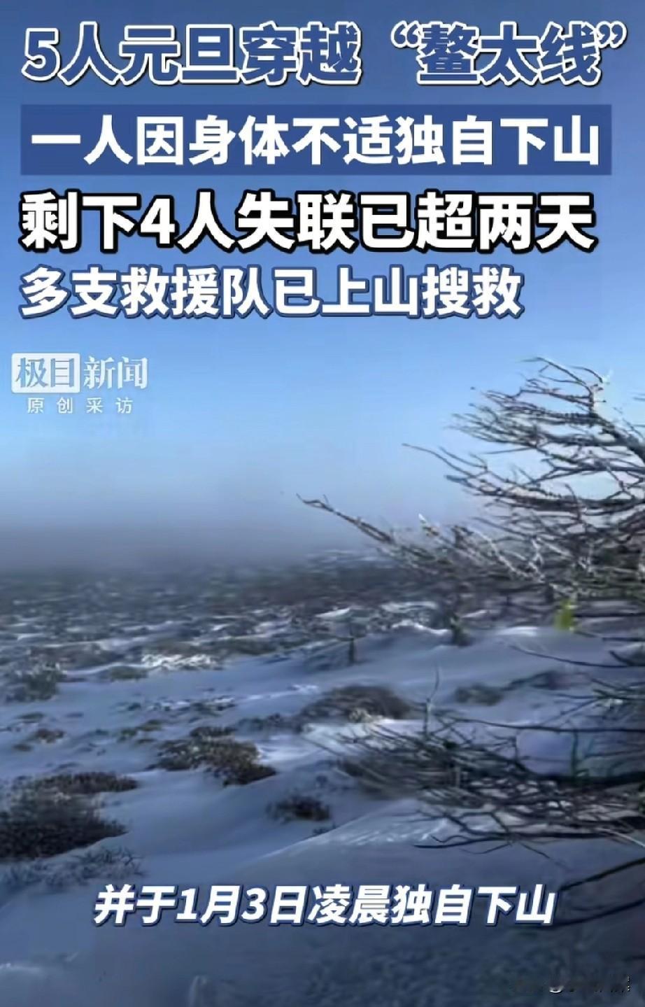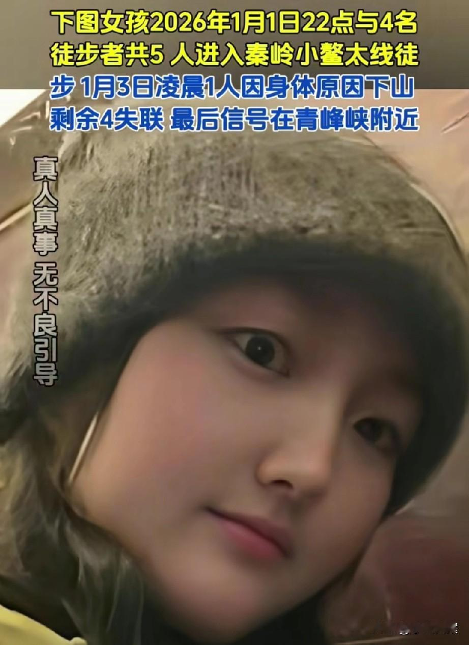 在小鳌太线失联的女孩长相甜美,他们5人深夜上山,1人中途离去,余下4人全部失联。从曝光的物资照片和事发地天气看,情况让人十分揪心! 在网上求助的是女孩姐姐,整个事情经过如下: 1月1日晚上10点,也就是元旦当天,5人结伴出发上山。到了第二天晚上,其中一人身体不适,与4人分开后,在1月3日凌晨独自下山。 也就在这人离开当天的上午10点左右,女孩和队友最后信号位置在青峰侠,之后便全员失联,再也没有了消息。 小鳌太线位于陕西太白山,它虽然没有鳌太线那么长、那么凶险,但几十公里的徒步距离,以及多座海拔3000米以上的山峰,仍然充满着高风险。 如今正值寒冷冬季,山上风大、气温低,恶劣气候加险峻地形,极易让徒步者发生失温、滑坠、迷路。 在出发前,有人晒出了车辆后备箱的进山物资,看着并不是很多。 冬季冰雪天爬山,衣物、帐篷、食物、器械等,都较之夏季要更为充足,否则出现一丁点意外,结局可就悬了。 从家属发布的照片看,失联女孩五官精致、长相甜美,身上衣帽充满户外风,应该是一名野外徒步的忠实驴友。 元旦去爬山,显然是想在特殊日子留下美好深刻记忆,可小鳌太线原本就不允许私自攀爬,因为风险性太高,更何况几人是在寒冷的冬夜出发,实在是太冒险了。 5人不明智中的唯一一点明智是,身体不舒服那人,与4人分开后天亮下山,没有逞能硬撑,也没有摸黑下山,更没有继续跟进,否则必然凶多吉少。 每个人的生命都只有一次,虽无限风光在险峰,但生命安全始终要摆在首位。我们不仅要为自己负责,更要想想身后的家人与朋友! 目前多支救援队已上山搜救,希望好消息能尽快传来,女孩和队友们都能够平安…… 【来源:极目新闻】