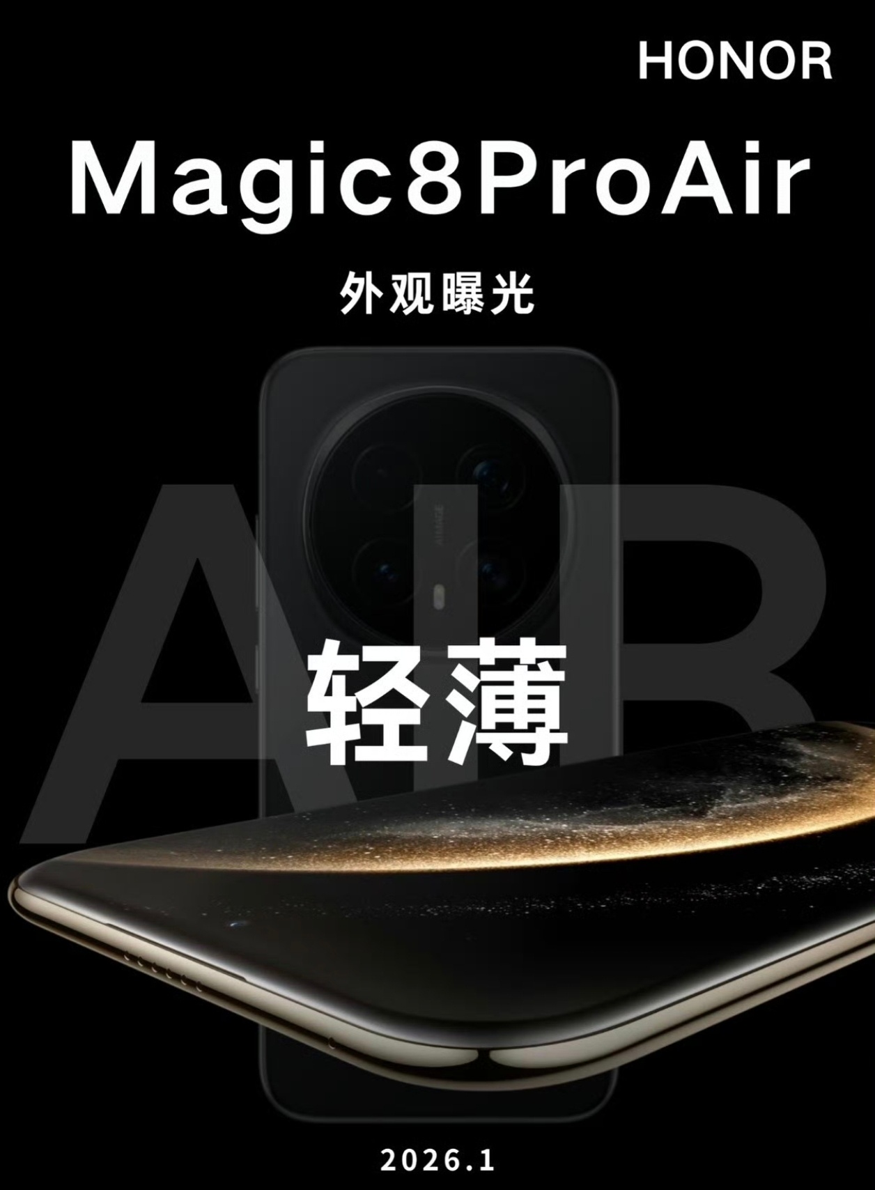 继华为、苹果、moto之后,荣耀Magic8 Air也要来了,配置是Pro级,然后三围尺寸是Air级的,再加上荣耀的青海湖电池,小体积大能量,这次的Air估计体验不错。据说还支持eSIM,轻薄这方面还是有希望和iPhone Air PK一下的。