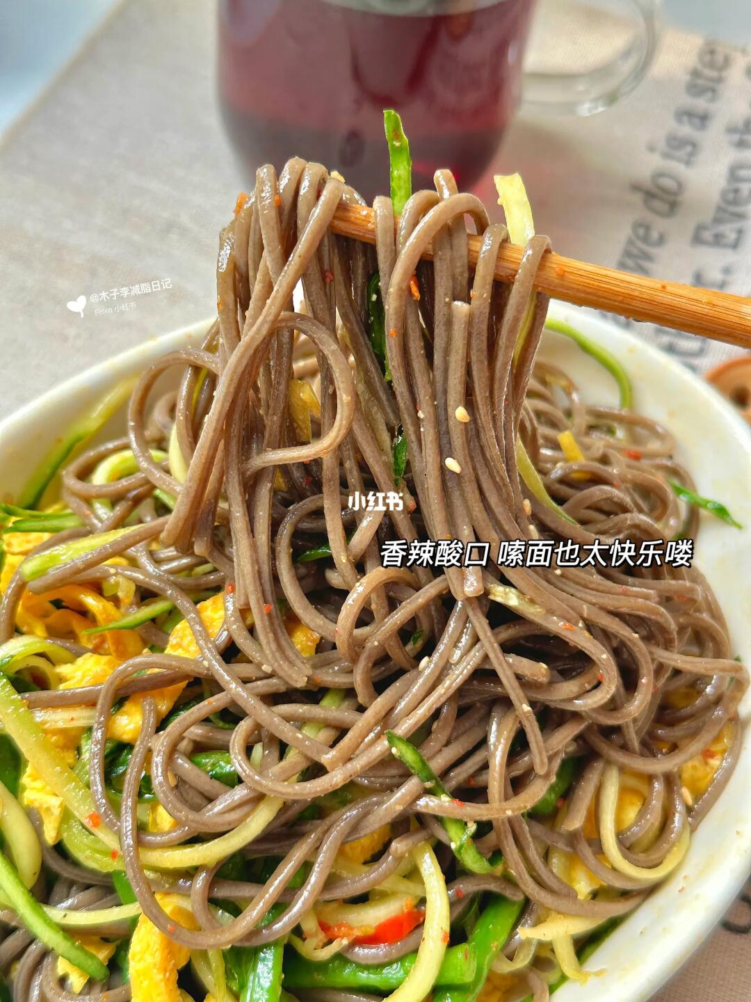 ▪️初始体重:120斤 ▪️现重:91.4斤 ▪️已➖29斤 - 🥣早:咸蛋黄肉松贝果 | 橙c美式 | 芒果🥭 | 鸡蛋 🥣午:凉拌烧麦面 | 桑葚茶 🥣晚:烤鸡腿🍗 🏋️运动:🈚 💧喝水2000ml - 📝凉拌面太适合夏天吃啦,搭配黄瓜丝香辣酸爽好好吃😋、减脂期主食用荞麦面代替精制面条,解馋又饱腹!好吃不胖~大口嗦面太满足啦! .好好吃饭,不熬夜,多喝水,多吃蔬菜水果!