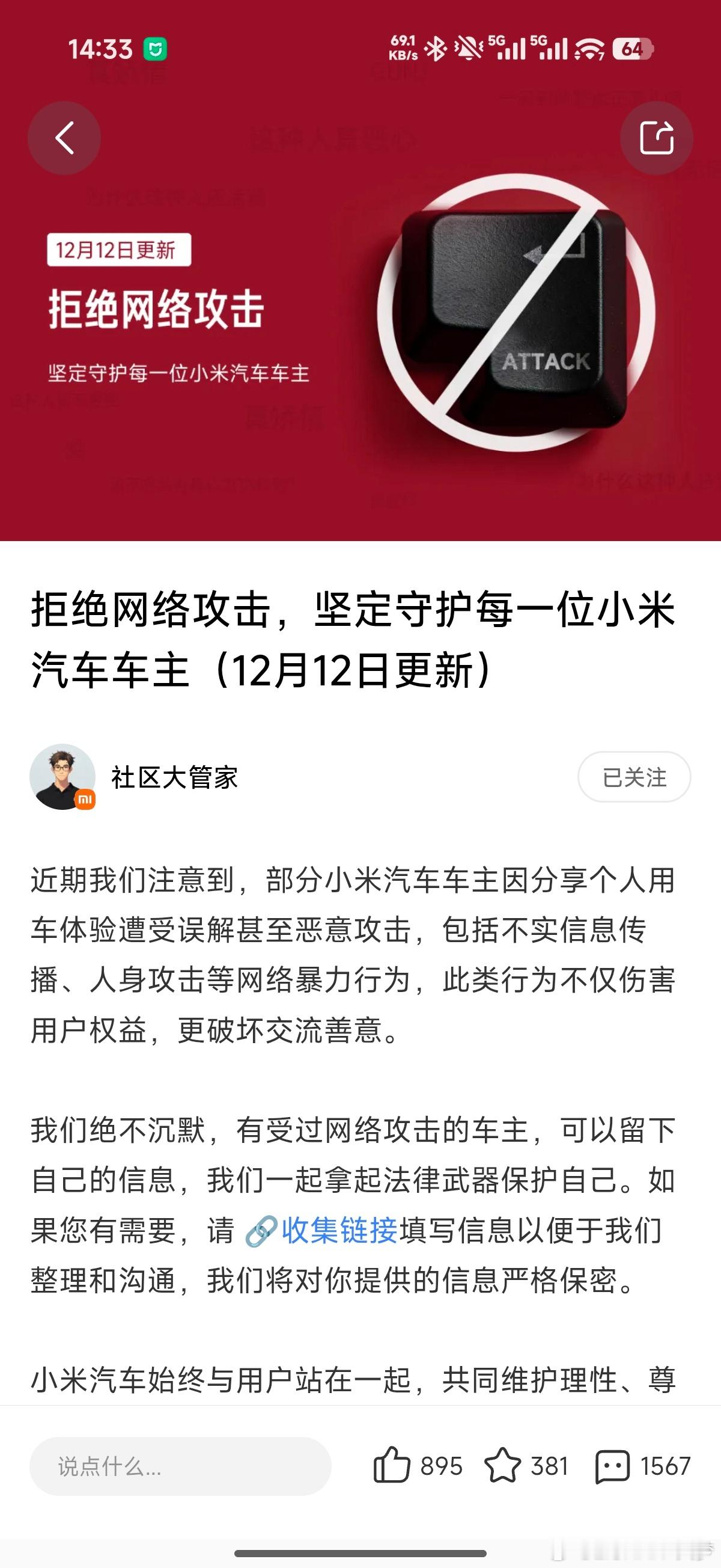 当小米汽车车主挺好的,虽然官方动作有点慢,但被网暴了真会帮你维权,用车不爽了骂两句也没啥。