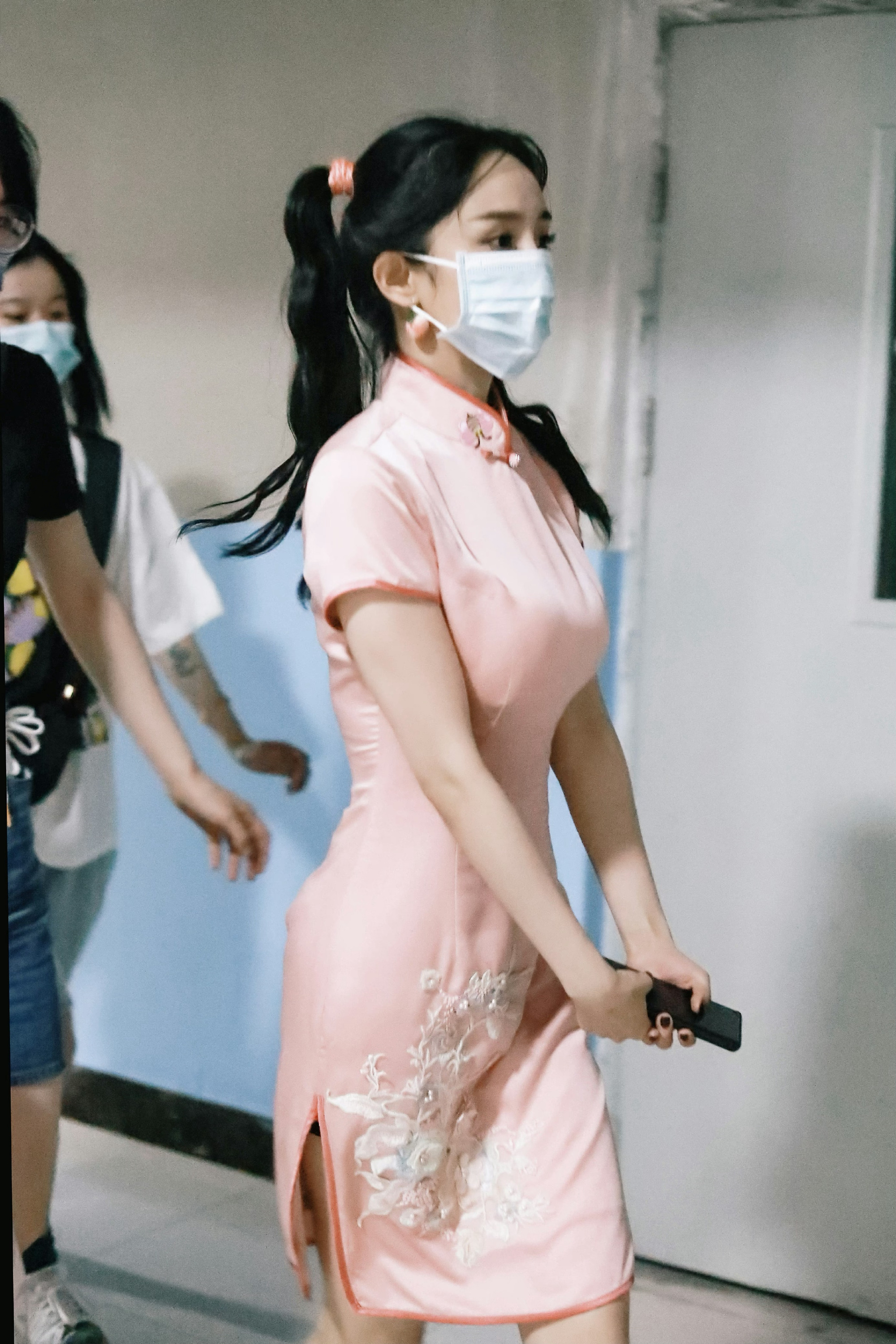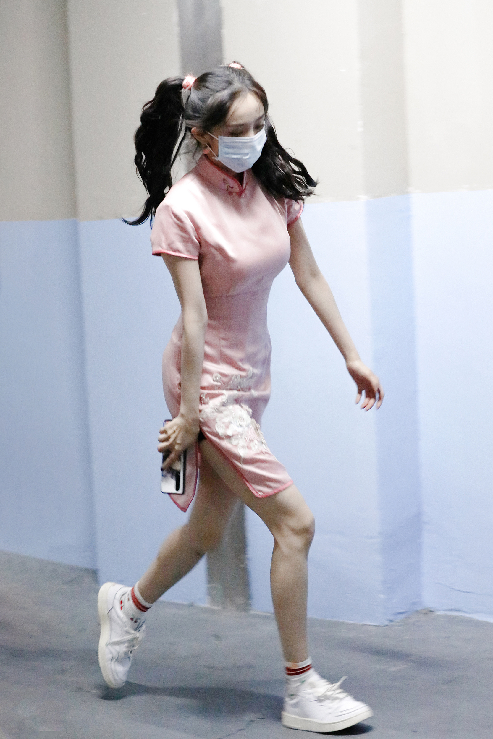 杨幂穿一身淡粉浴袍装,红唇点缀,太优雅了。杨幂