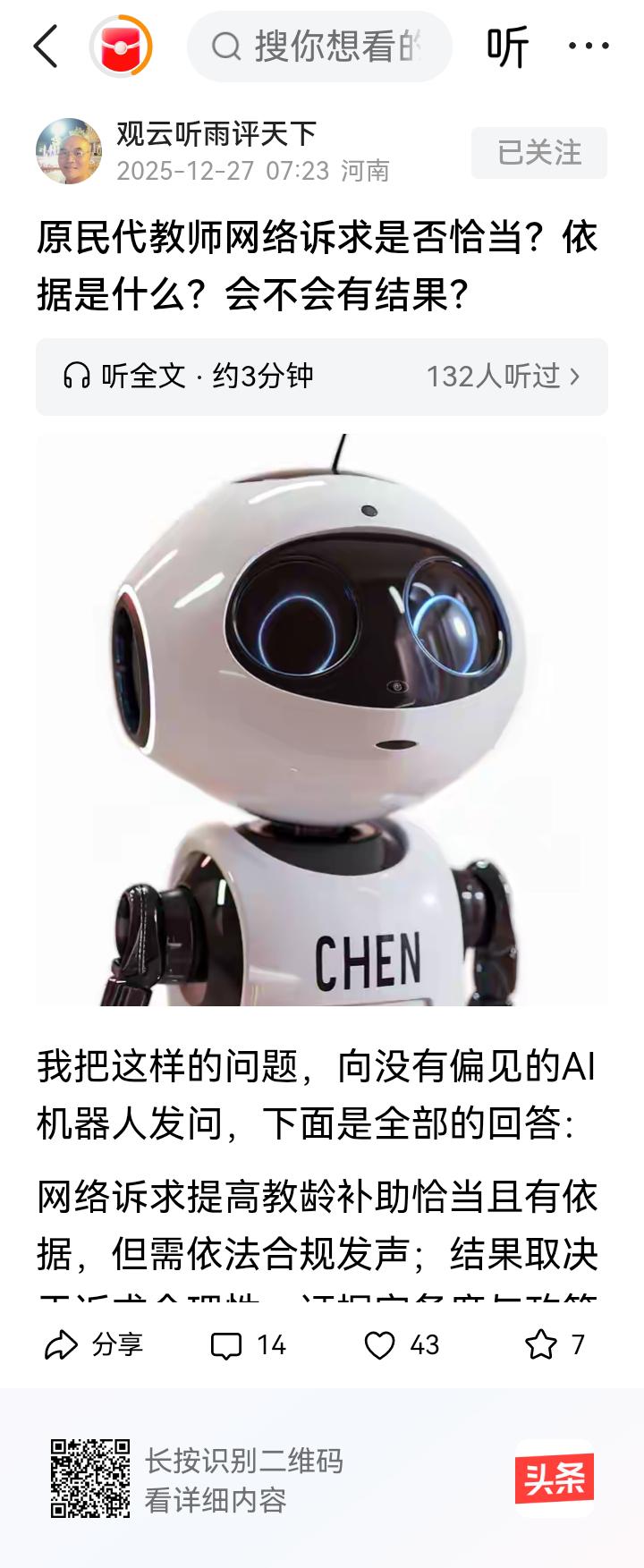 对!多数民办教师真正关心的,是和自己切身利益相关的养老金该怎么发放。