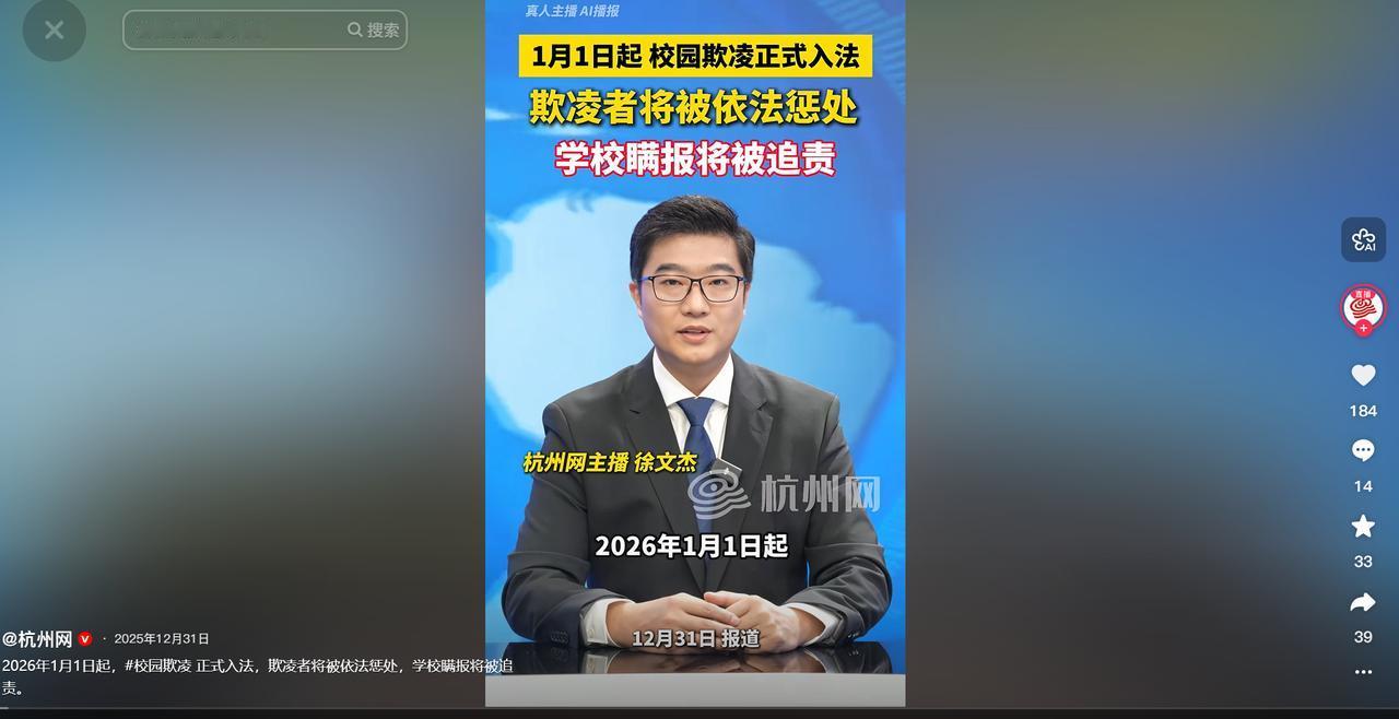 从2026年元旦开始,“校园欺凌”立了法。 以后在学校里欺负同学,就不是老师批评、写个检查那么简单了,可能要吃官司、受法律处罚。而且,如果学校知道了欺负人的事却藏着掖着、不处理不上报,学校自己也要被追究责任,负责人可能跟着倒霉。 2026年元旦刚翻过去没几天,咱们国内校园里的氛围就明显不一样了,以前总有人觉得,孩子之间打打闹闹是“小事”,顶多算“玩笑开过头”,这种老观念现在彻底行不通了,从元旦这天起,校园欺凌正式有了法律管着,一道硬邦邦的法律红线,直接把这种行为划出了“小事”的范畴。 这可不是换个日历那么简单,意味着以前只靠道德谴责的校园欺凌,现在彻底进入了法治约束的时代,再想随便欺负同学,后果可比想象中严重多了。 以前在学校里横冲直撞的那些“小霸王”,这回是真的好日子到头了,搁以前,就算把同学欺负了,最坏的结果也就是被老师骂一顿,写个检查应付了事,根本起不到什么警示作用。 可现在不一样了,再敢动手欺负人,或者用难听的话侮辱同学,就不是批评教育能解决的了,搞不好还要吃官司、受法律处罚,留下的污点可能影响一辈子。 想想以前那些被欺负的孩子,真是让人揪心,就说有个读初二的男生小林,性格内向,被三个同学整整欺负了半年。放学被堵在厕所里骂是常事,还被泼墨水、逼着下跪,作业本和文具也总被弄坏。 家长发现孩子身上的淤青找去学校,校方也只是把施暴的孩子叫过来批评几句,让写个检查就完了,结果不到一个星期,小林就因为实在受不了,选择了跳楼逃避,好好的一个孩子就这么没了。 更让人无奈的是因为施暴的孩子还不满14岁,法律没法惩戒他们,学校也只是轻描淡写说句“管理疏忽”,受害者家庭想讨个说法都难。 但2026年的这个新规,就是专门冲着这些问题来的。首先就把“校园欺凌”的范围划得明明白白,不只是动手打人才算,说侮辱人的话、拉着同学孤立别人、在网上骂人造谣,甚至抢同学的东西,都算欺凌,全在法律管的范围内。 而且处罚分得特别清楚,不同年龄的孩子,后果完全不一样,要是12到14岁之间,别以为年纪小就能躲过,只要实施了严重的欺凌行为,公安机关直接就会介入,不仅要训诫,还会责令家长严加管教,更关键的是,这个污点会记进个人成长档案里,以后升学、找工作,这份“黑历史”都会跟着,影响可太大了。 要是14到16岁的孩子,法律的约束就更严了,只要把同学欺负到轻伤以上,就不是“不懂事”的问题了,直接要负刑事责任,真的会吃官司,就算是不满12岁的小孩,只要敢施暴,家长就得承担全部的赔偿责任,学校还能建议把孩子送到专门的矫治学校去管教,说白了现在再没什么“熊孩子”能靠着年纪小就无法无天了。 这次立法最让家长们解气的,是把学校的责任也盯得死死的。以前不少学校为了自己的声誉,遇到校园欺凌的事,第一反应就是藏着掖着,想把事儿压下去,现在这招彻底没用了,新规逼着学校必须建立排查机制不是走个过场,而是要求每周至少查一次有没有欺凌的苗头。 一旦发现问题,学校只有24小时的时间处理,必须在这一天内上报给教育部门和公安机关,还得马上把施暴的孩子和被欺负的孩子隔离开避免再出危险,要是学校敢隐瞒不报,或者拖着不处理,处罚可不是闹着玩的,要罚5万到50万的巨款,年度评优的资格直接取消。 更严重的是校长和直接负责的老师还可能被撤职,乌纱帽都保不住,这种把校长的职位和校园安全绑在一起的做法,彻底打破了学校“多一事不如少一事”的想法,再也不敢随便遮丑了。 新规实施后,效果马上就显现出来了,数据显示刚实施三个月,全国教育部门接到的校园欺凌举报量就比去年同期涨了40%,这可不是说欺凌变多了,反而说明以前那些被欺负得不敢作声的孩子,现在终于有勇气站出来说“不”了,因为他们知道背后有法律撑腰。而且查实后的欺凌事件,处置率达到了100%,再也没有不了了之的情况。 其实立法的目的不是要把谁一棍子打死,而是给校园划一道清晰的底线,不管哪个孩子,不管性格内向还是外向,都不该生活在被欺负的阴影里,现在这道法律的保护墙,总算实实在在地建起来了。