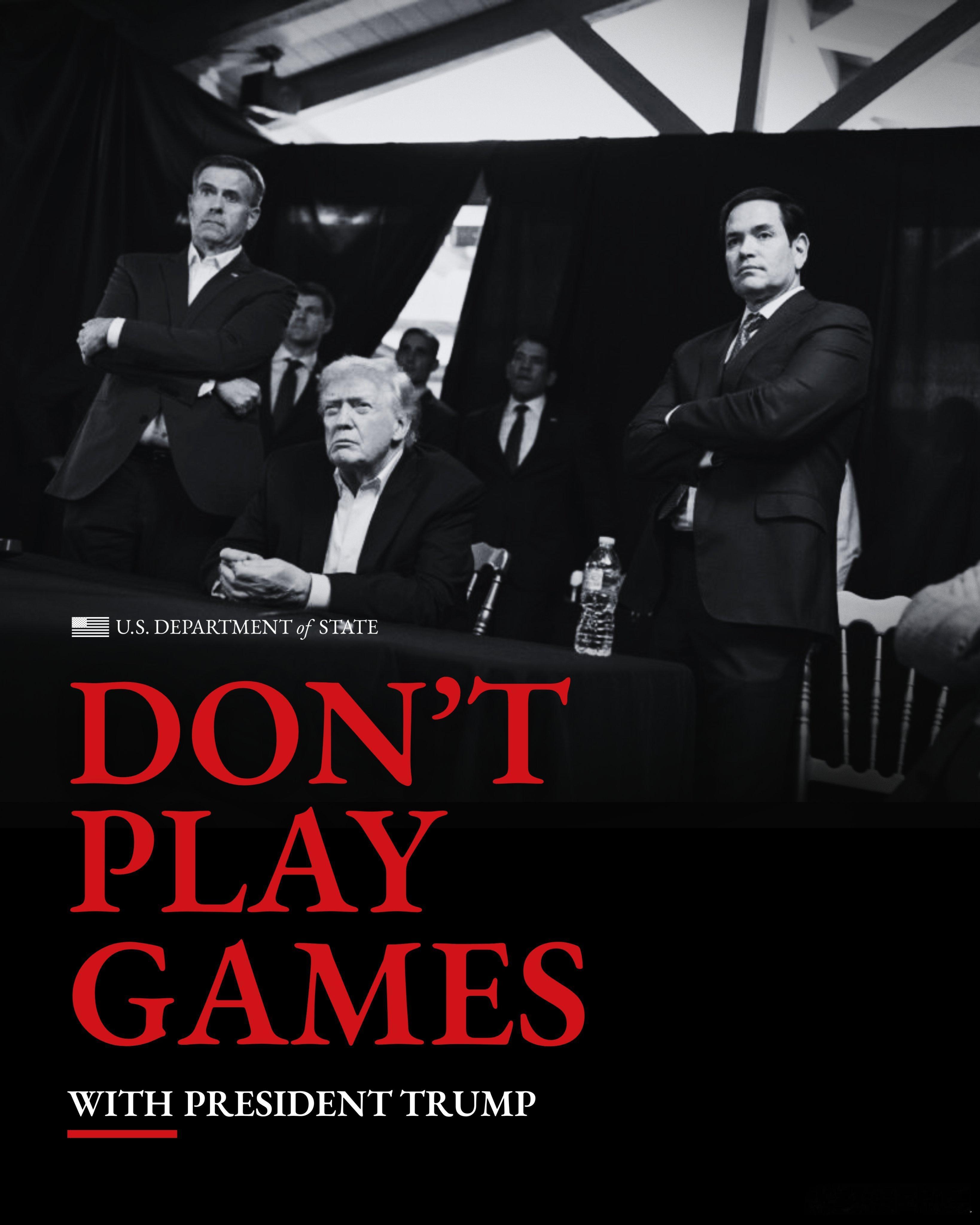 美国国务院:DON'T PLAY GAMES WITH PRESIDENT TRUMP