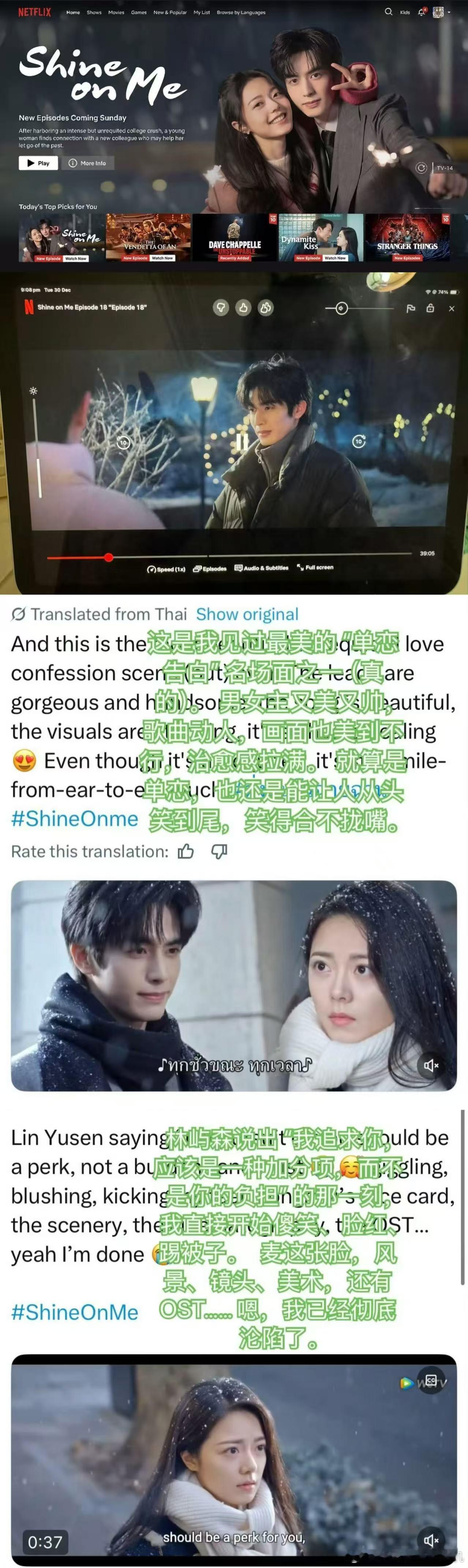 海外网友吻上骄阳似我 骄阳似我北美上线太争气,网飞开屏就是大横幅,全球各地热梗安利刷屏,健康餐式恋爱不分文化背景,让海外网友也狠狠get到这段关系的浪漫。