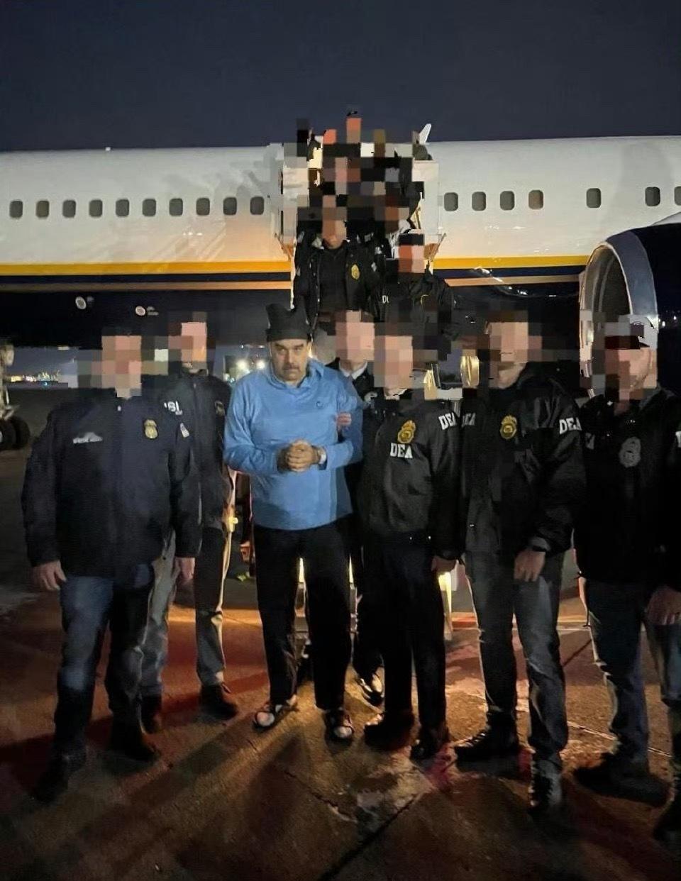 这速度太快了一天前天上一天后地狱马杜罗戴脚镣走下飞机