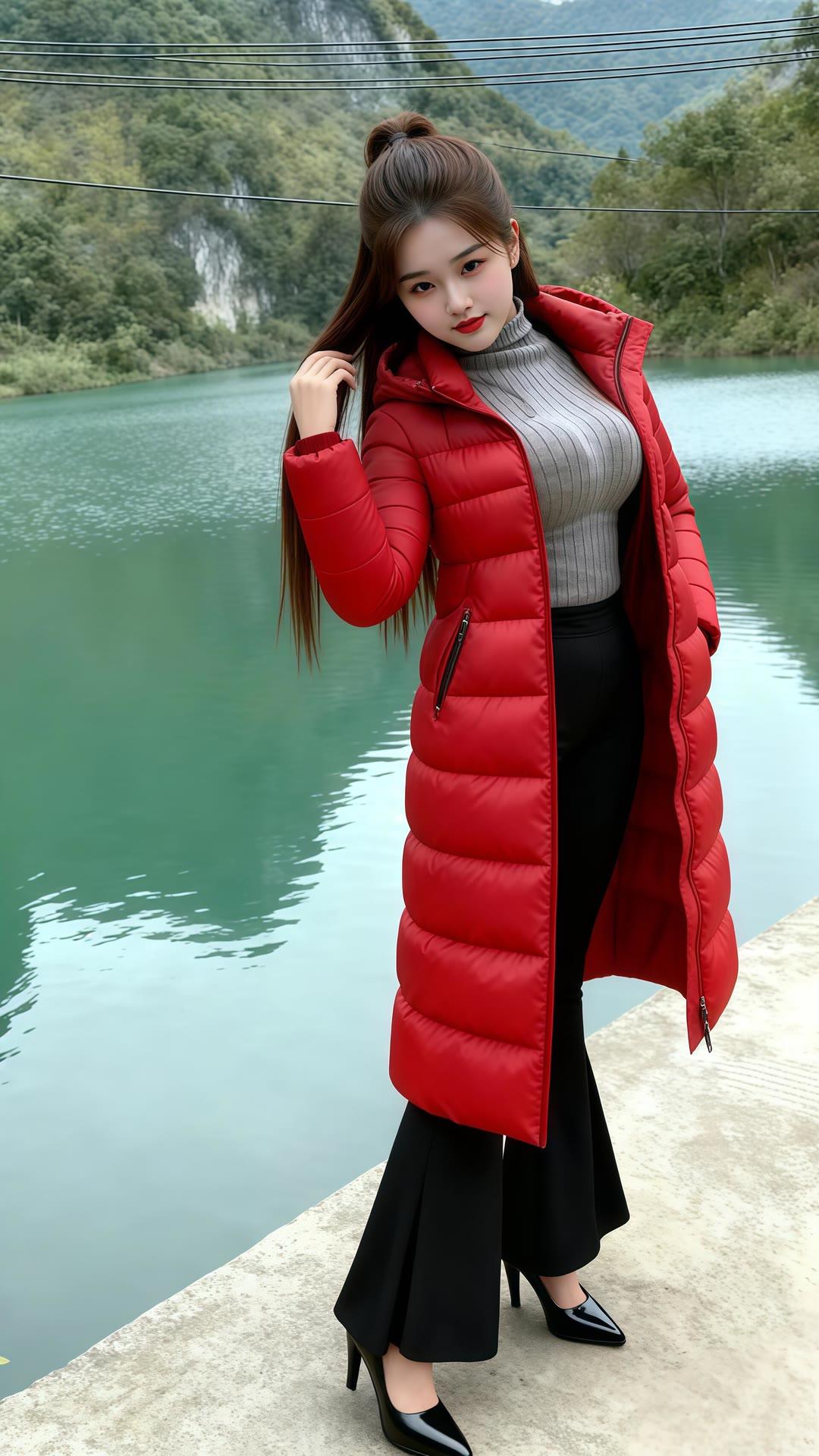 冬日穿搭指南:红色羽绒服+黑色高腰裙,温暖又时尚!🌟👗👢