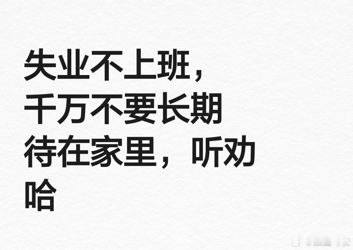 如果一个人长期不工作长期呆在家里,如果没有自己的小事业,你不仅失去了收入,更会失去对生活的掌控感。如果说自己失业已经半年了,也没有找到工作。刚开始觉得挺不错的,没有时间的限制,不用早起,不用通勤,但时间久了,她开始慌了。我能理解这种感受,一个人在家呆的久了,没有目标,没有社交,没有生活的重心。每天大脑像行尸走肉一般,不想思考,只想无脑的耍手机,看剧,然后没了时间,连吃饭都是应付。说实话,人一旦没有了工作的约束,家就不再是一个避风港了,而会变成一个温柔的陷阱。千万别让生物钟乱了,让自己多刷新闻、多接触外界信息,多冲冲浪,研究一些有意义的事,祝大家早日上岸~