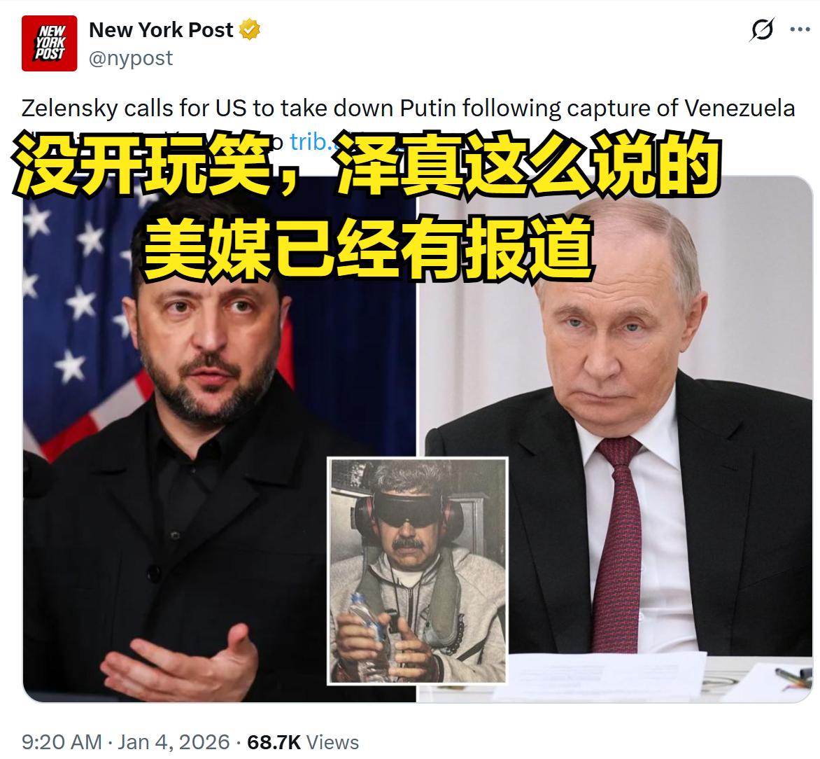 既然美国能这么玩……有人已经按捺不住了: 泽连斯基今天已经在公开场合呼吁:【我能说什么?美国知道下一步该做些什么,要不再来一次,帮我去莫斯科捉个人?】 此时他脸上浮现出讲脱口秀爆梗时的得意表情。 可他是如何笃定,莫斯科就不会同样派几个人到基辅呢?
