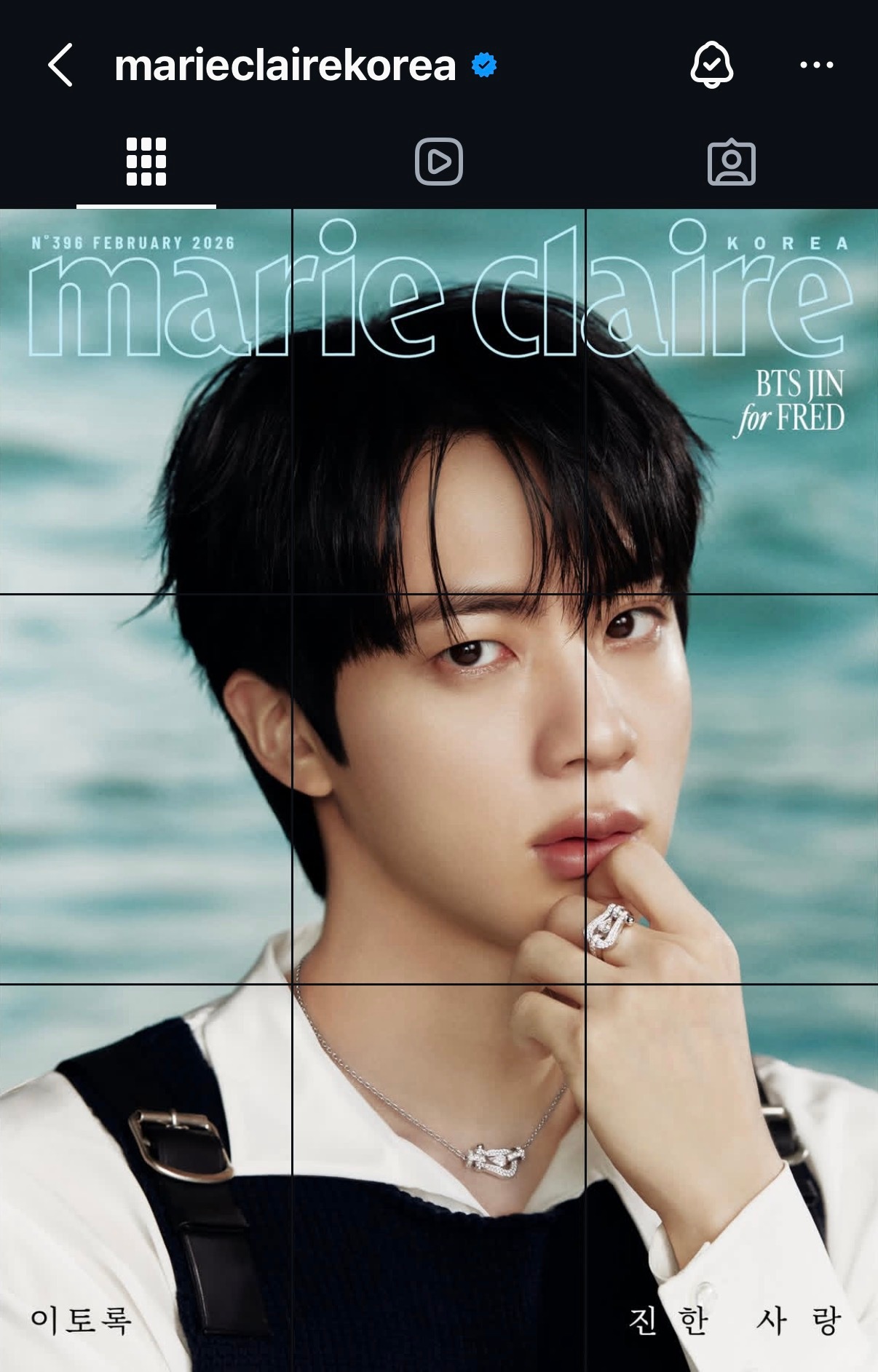金硕珍 JIN | Marie Claire Korea February 2026韩国版 Marie Claire 已经迫不及待的带来了二月刊宣传预览 ,惊喜迎来金硕珍 JIN 的坐镇 !为表重视杂志甚至将一张封面拆分成九宫格形式发布 ,主封面还没出目前已经连发近 20 条新帖 !隆重程度也是无需多言哈 ,而 Jin 则佩戴 FRED 品牌标志性的 Force 10 系列珠宝出镜 ,值得一提的是今年也是品牌这一重磅系列推出市场 60 周年的意义节点时刻 ,全球代言人领衔的宣传阵势自然不可小觑 ,广告 、封面 、活动 … 请多多来袭 ! 🔥