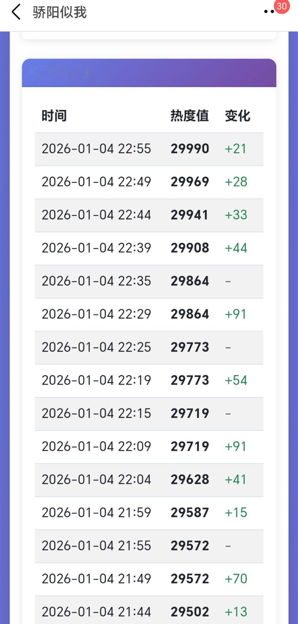 骄阳似我腾讯站内热度值破30000了,谁懂工作日晚上6小时涨四千热度值的水分有多