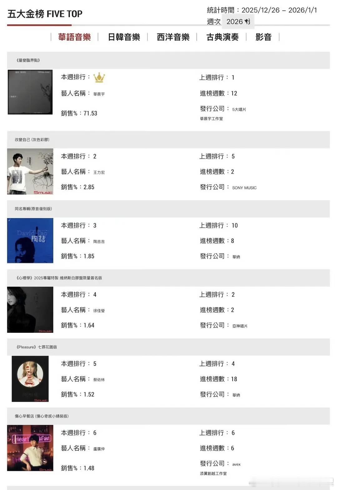 华晨宇六专cd版拿下五大金榜12连冠,打破周杰伦的11冠记录!什么水平?