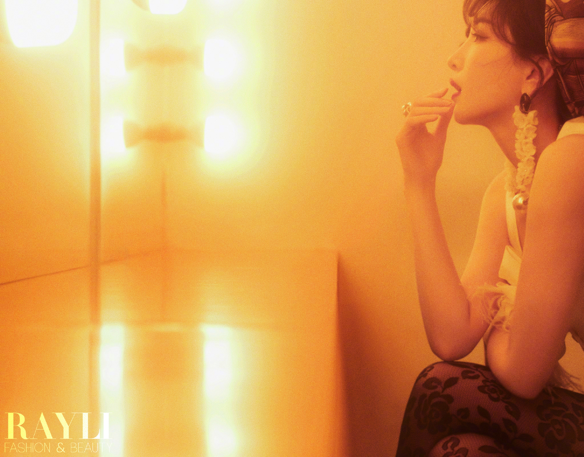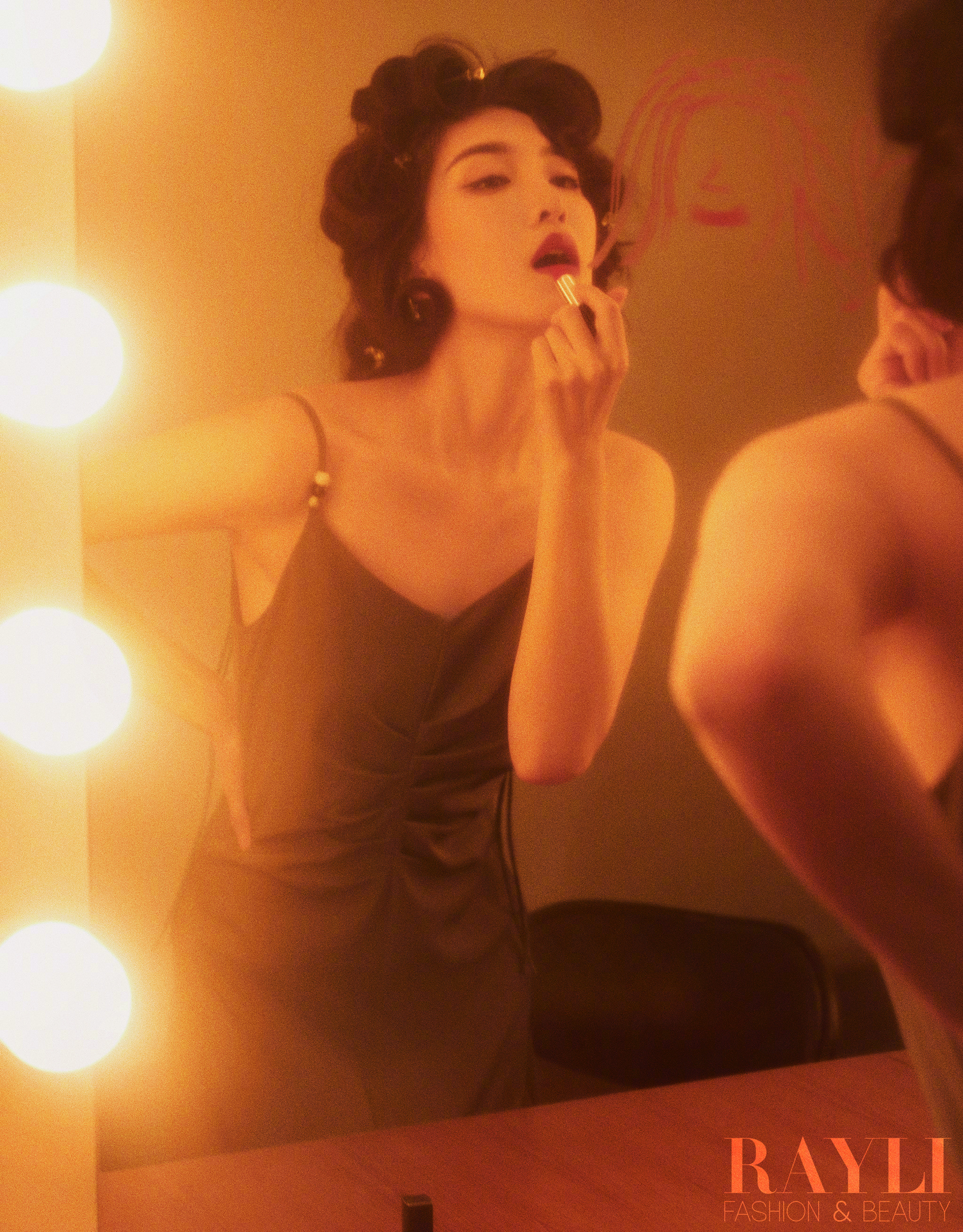 江疏影复古风格大片:红唇吊带,朦胧明艳的迷人姿态。江疏影